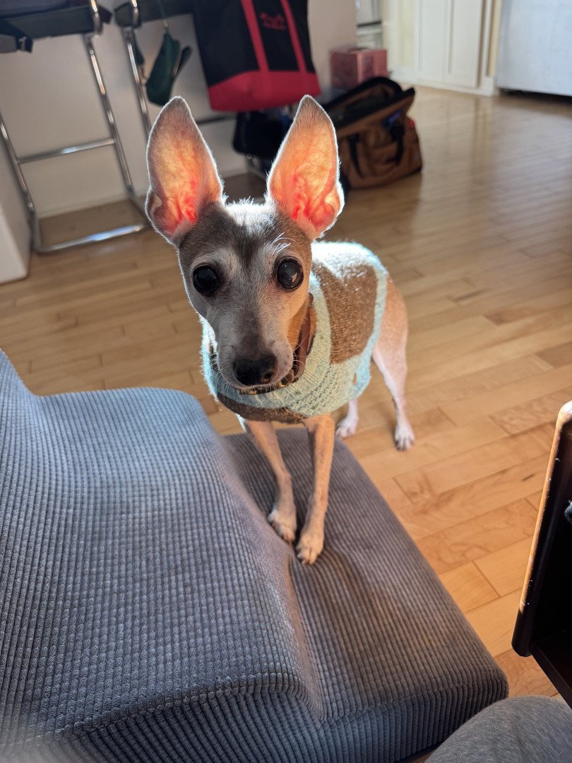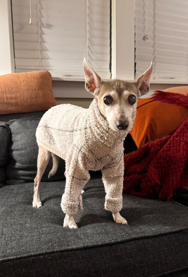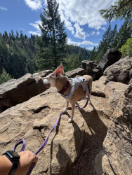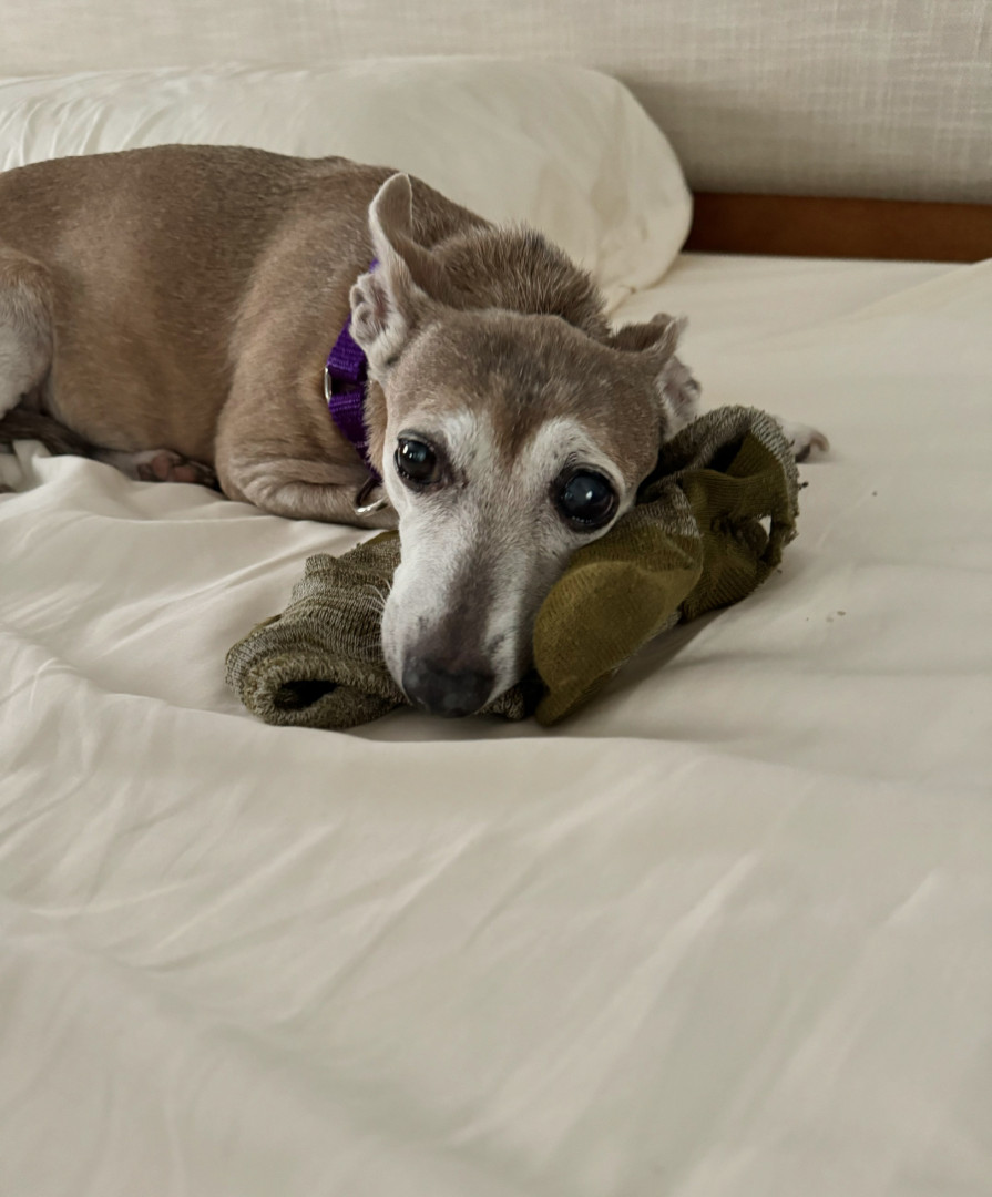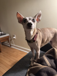 Olivia is a 17 year old Italian Greyhound who still has a lot of sassy spunk and energy. She loves going for walks, hikes & a good snuggle.