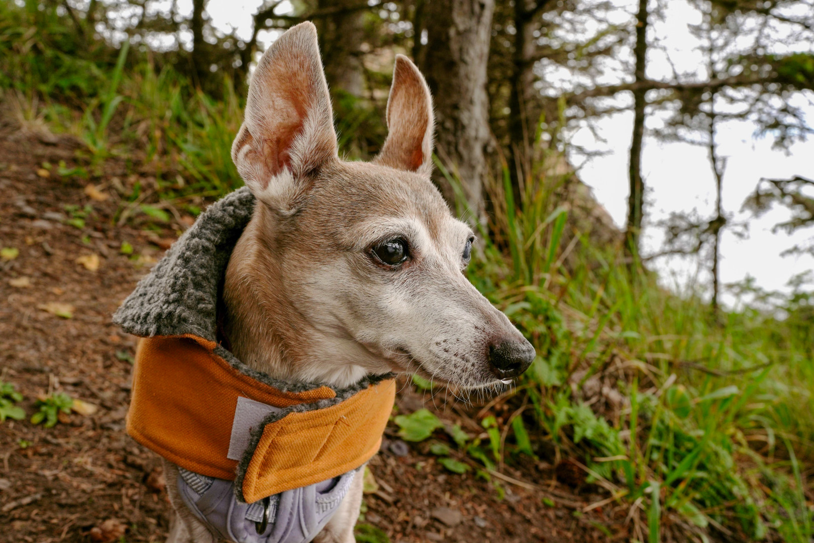Olivia came to me 14 years ago as a rescue at a time when my heart needed healing. She was skin and bones, incredibly fearful of everyone and everything, I knew I needed her as much as she needed me. We bonded immediately. She is a sweet old lady who has been through a lot and admire her strength; she has moved across the country with me and she's still here kickin it! Hiking, exploring, you name it she loves it!