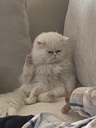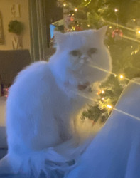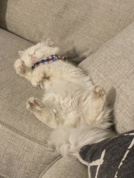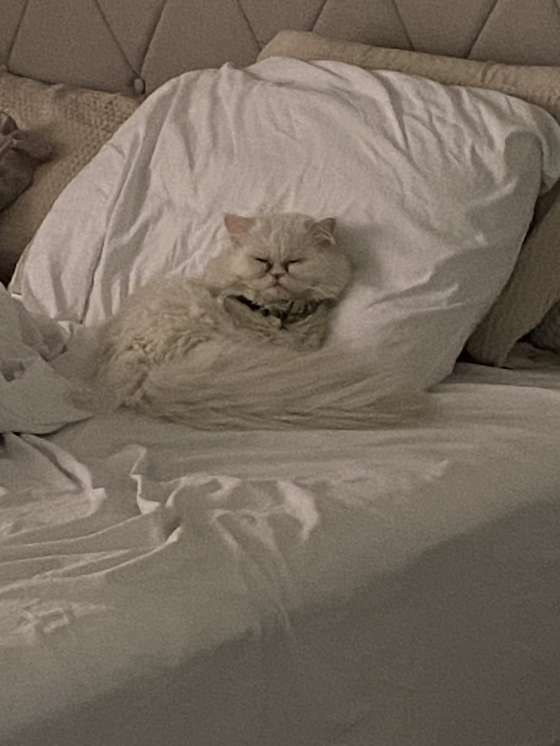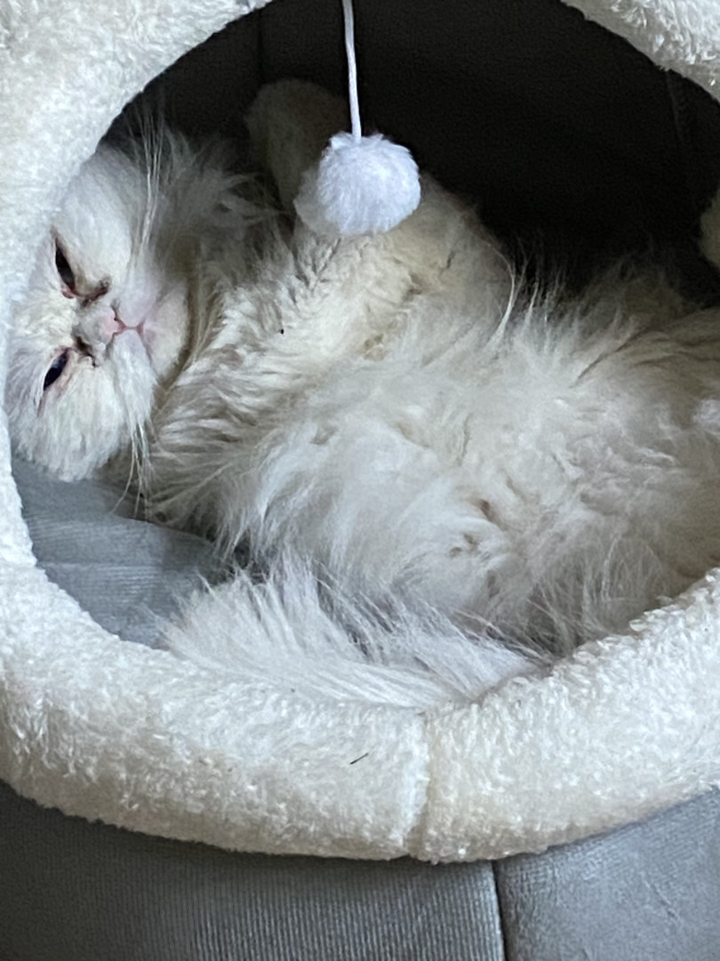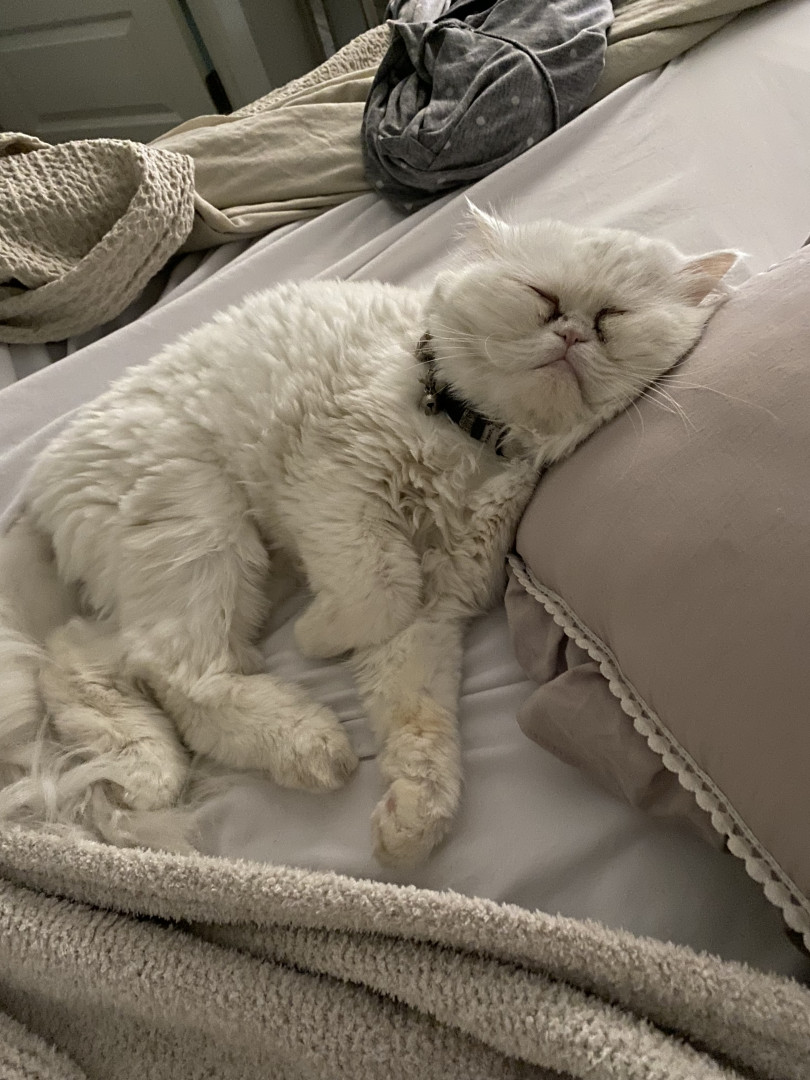 Olli loves to sleep and he says hello after he eats and very lovable cat