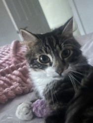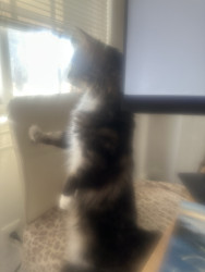 I adopted this cat from a shelter he is 2 years old fullof spunk loves to play&bring his toys 2me drop them at my feet so I can play withhim