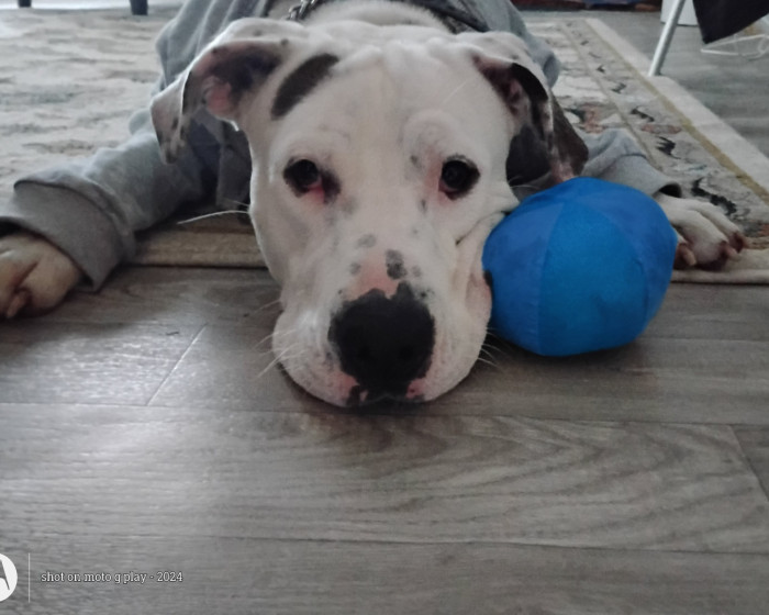 "Ollie" undeniable ruler of our home, a canine filled with charisma,love & spirit that’s impossible to ignore. He has our hearts wra
