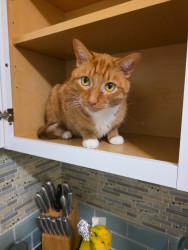 Ollie likes to investigate everything i am doing. He is capable of opening closet doors and cabinet drawers. He is very loveable He gives