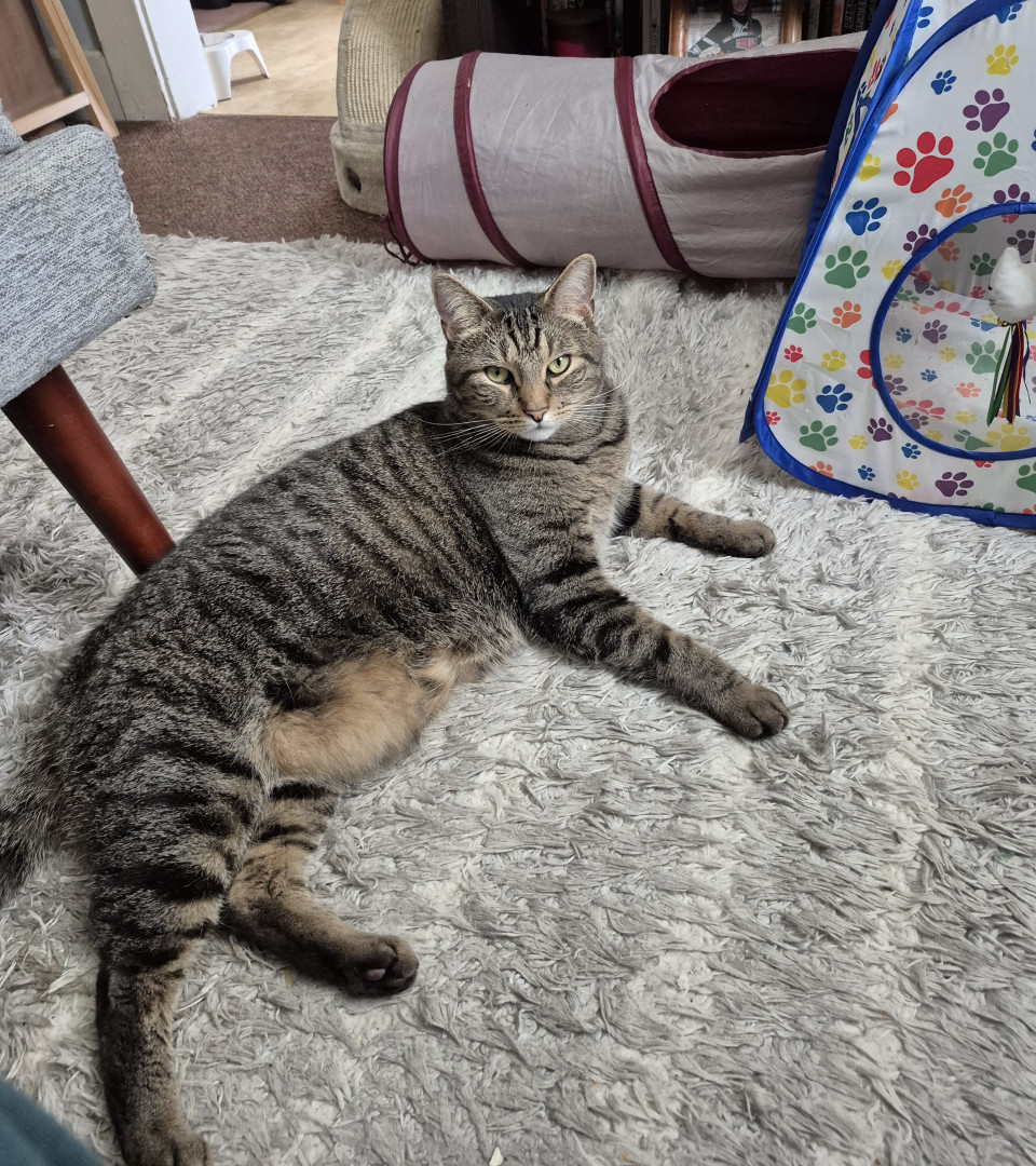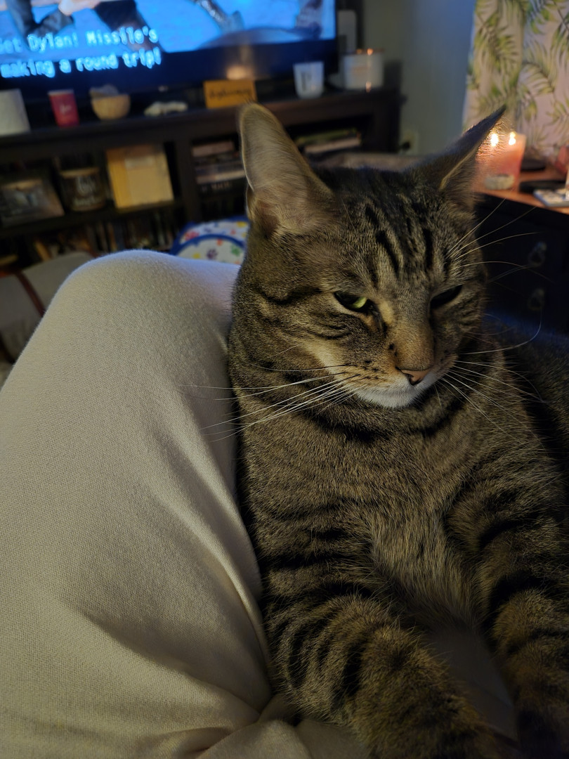He is fierce and strong yet loving. He luvs to snuggle and eat his treats.
