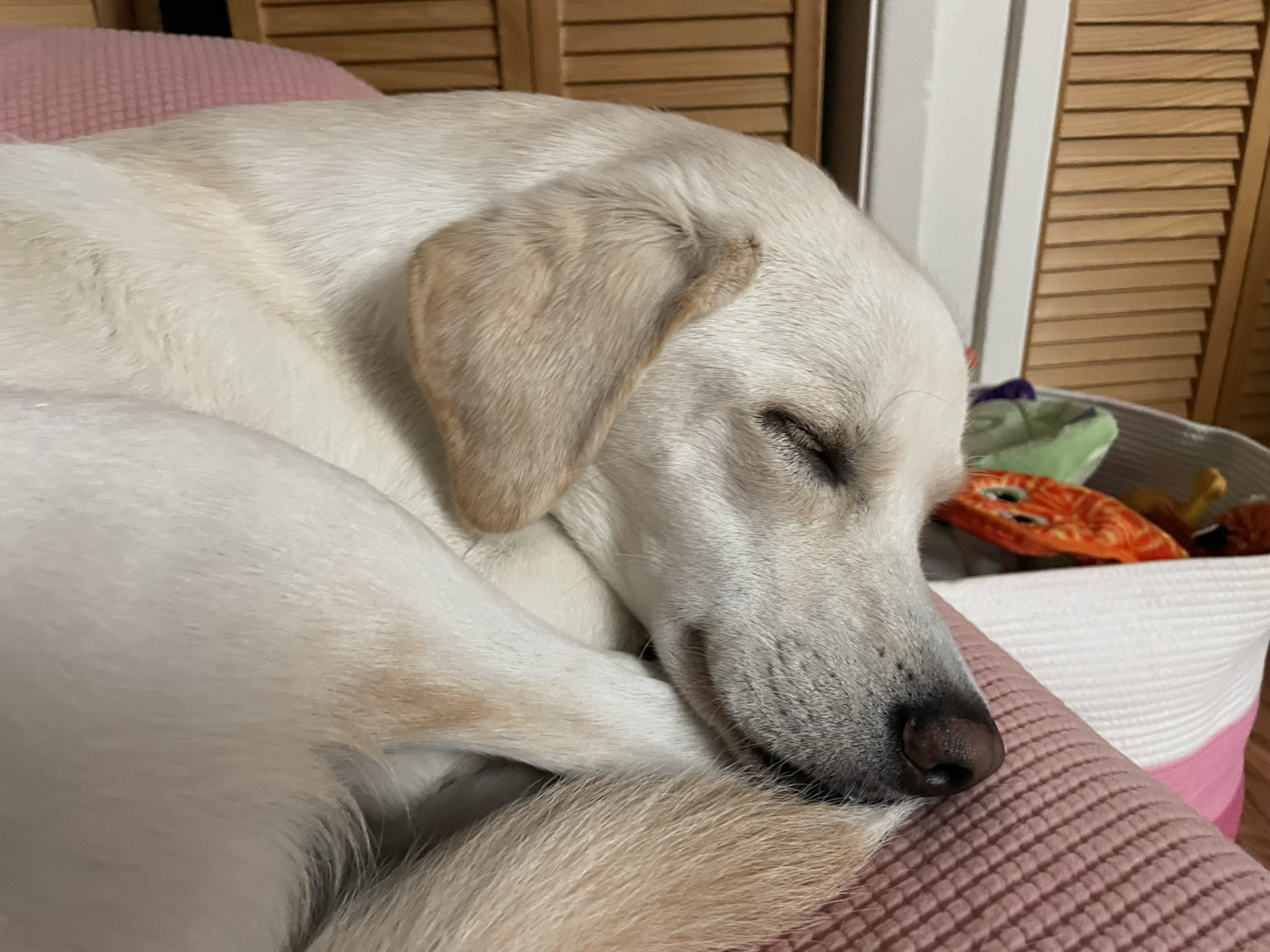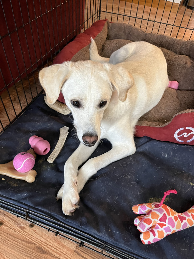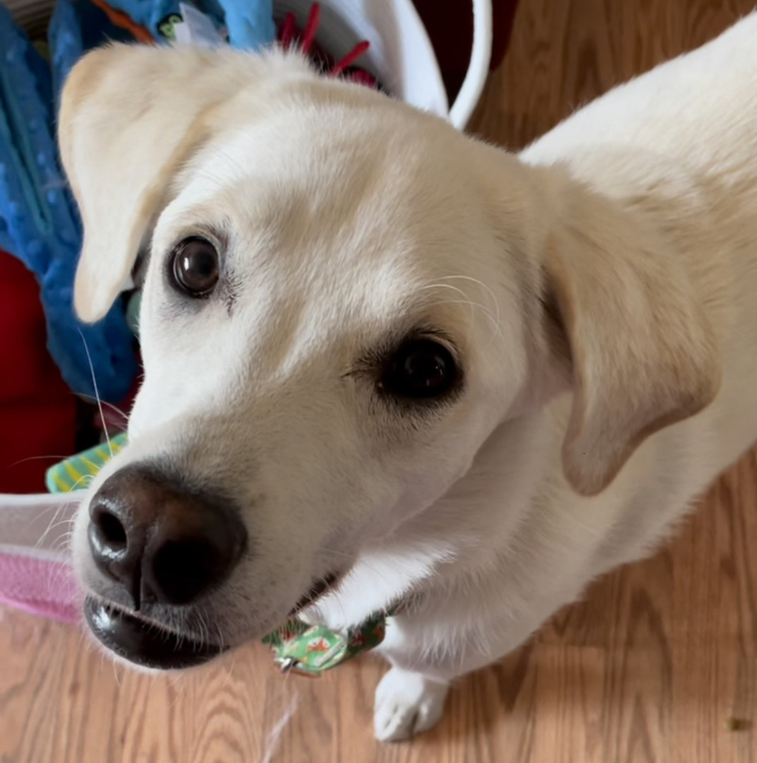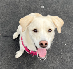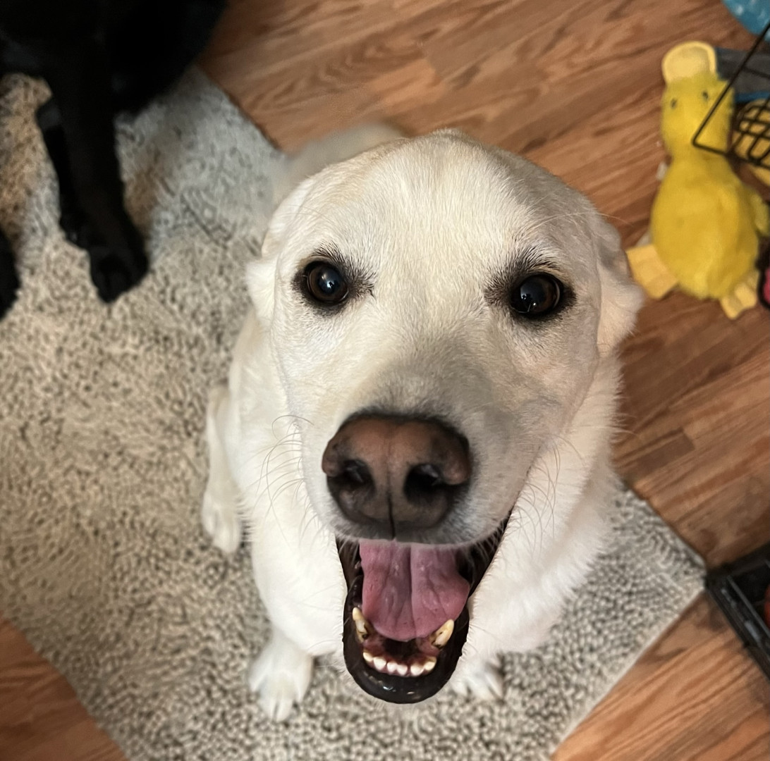 Ollie often steals the hearts of the people he meets! His cute little underbite, his lovely blond eyelashes, and his naturally mellow demeanor make him easy to fall in love with. He’s very smart and he likes to boop his nose on people’s fingertips. And while he is technically four-years-old, he’s still an energetic puppy at heart!