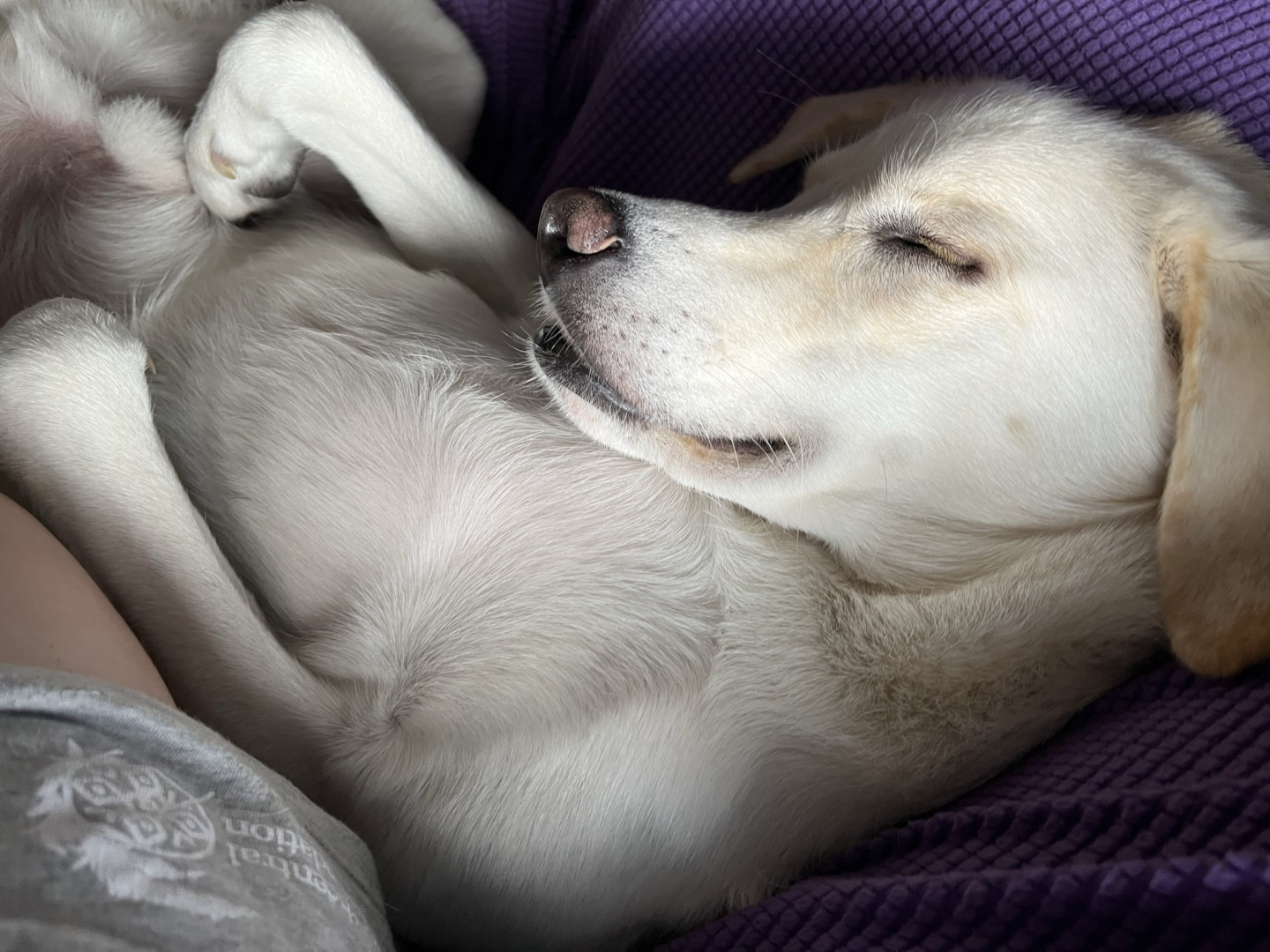 When Ollie was a wee pup, his entire litter caught distemper, and sadly he was the only one who survived. Because he had so little time with his littermates, his social skills are… unique. For example, he won’t climb on people or other dogs, and he won’t push things open with his snout. But he loves to roughhouse with his adoptive siblings, and to ever so gently rest his snout on his mommy’s lap or shoulder to request cuddles, pets, and belly rubs!