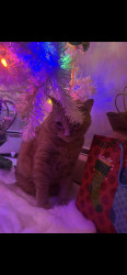Ollie is an orange cat about 20 pounds. He’s almost 7 1/2. I’ve had him since he’s been six weeks old and he also stands up to my lab mix.