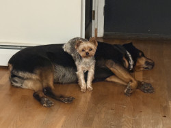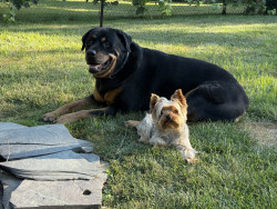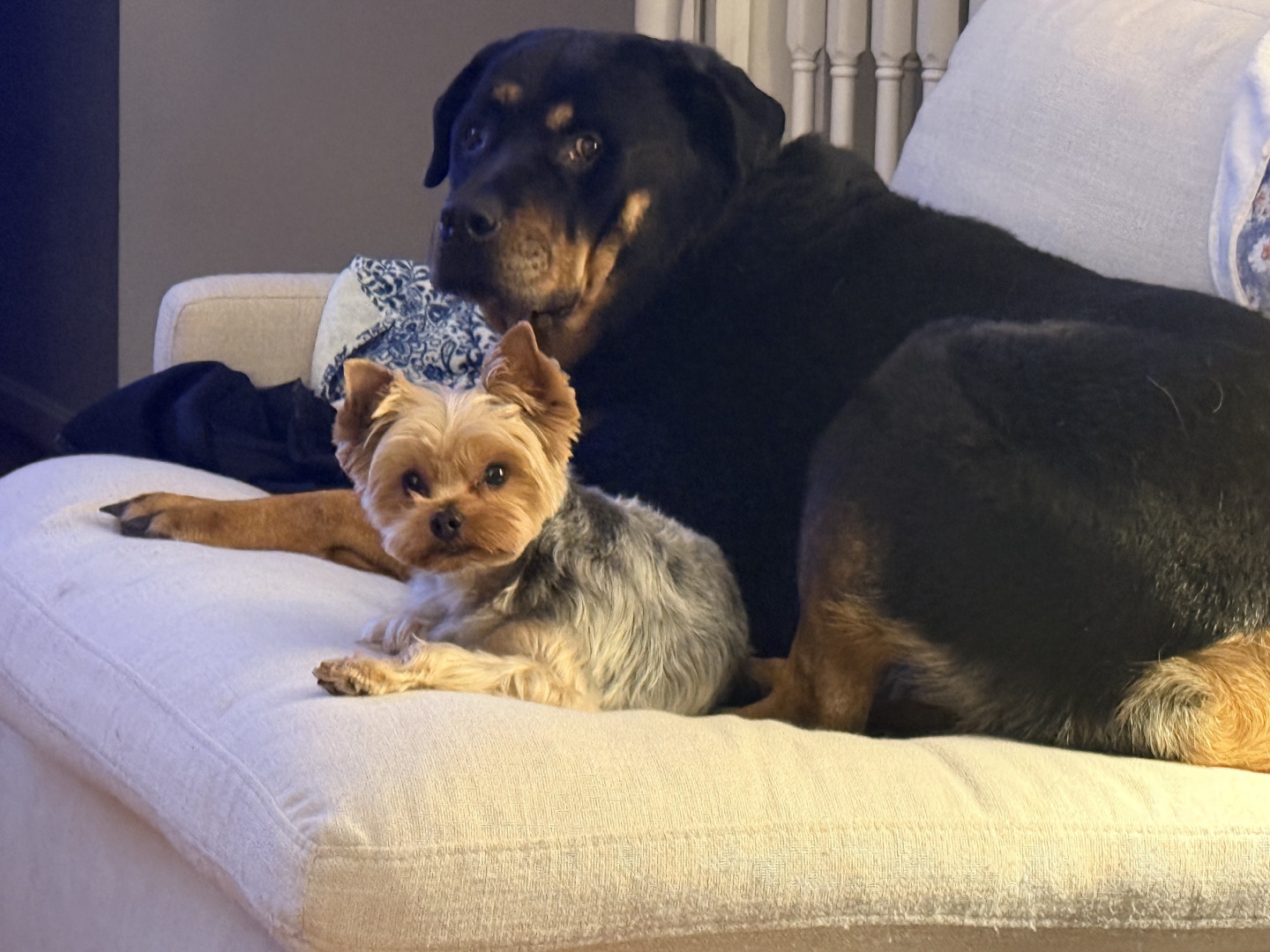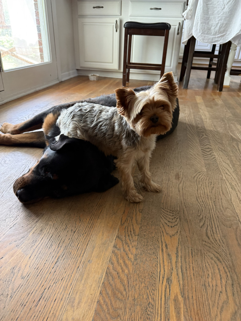Ollie is most confident he’s the size of his best buddy our 140 lb Rottie! These two are best buddies!