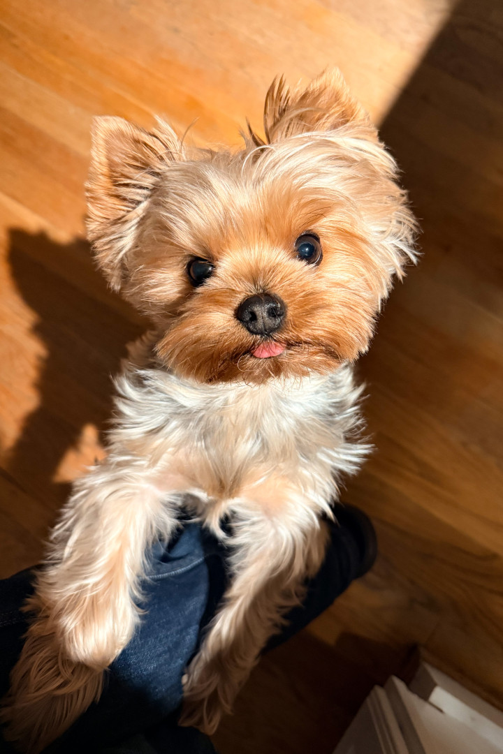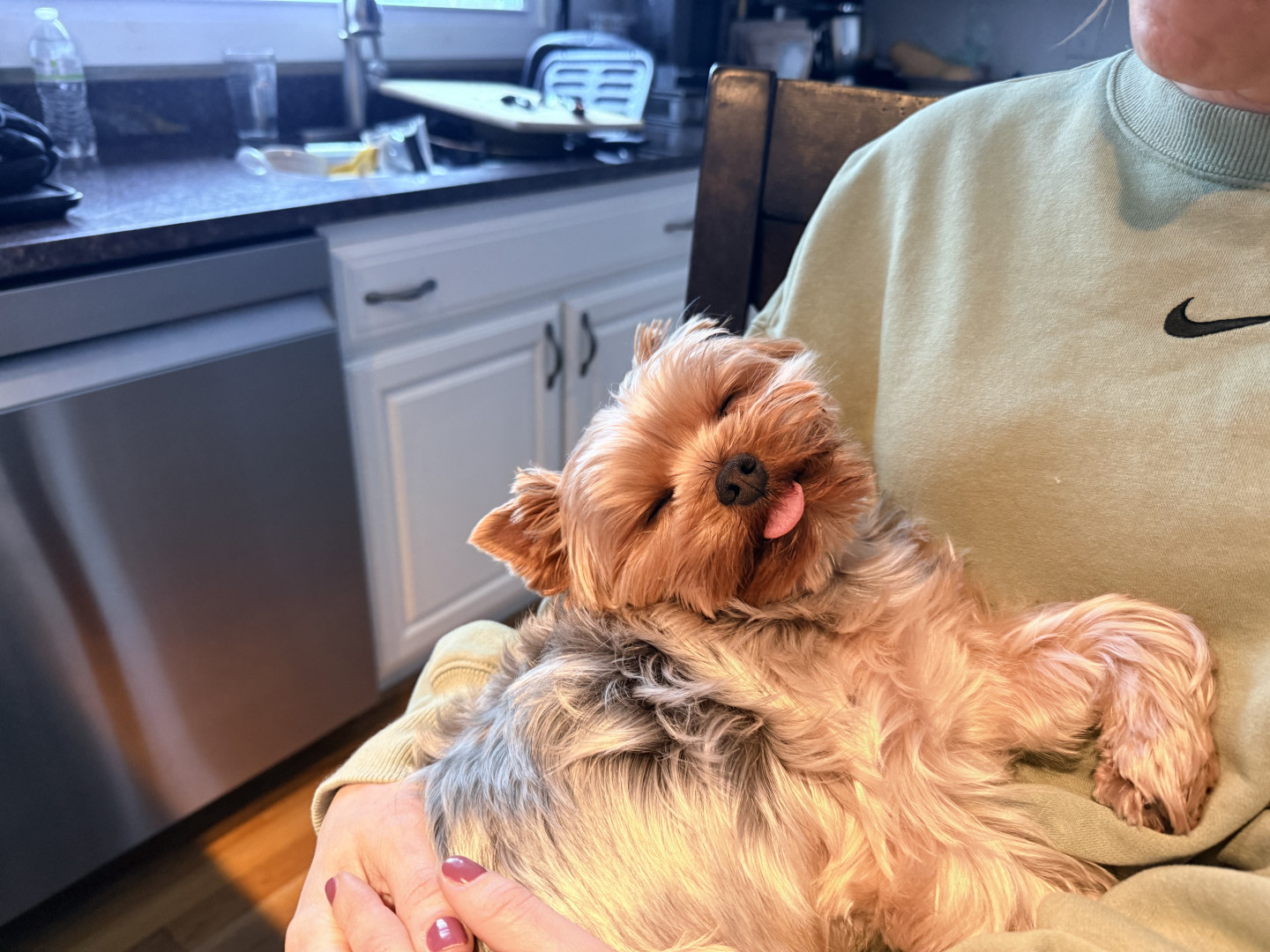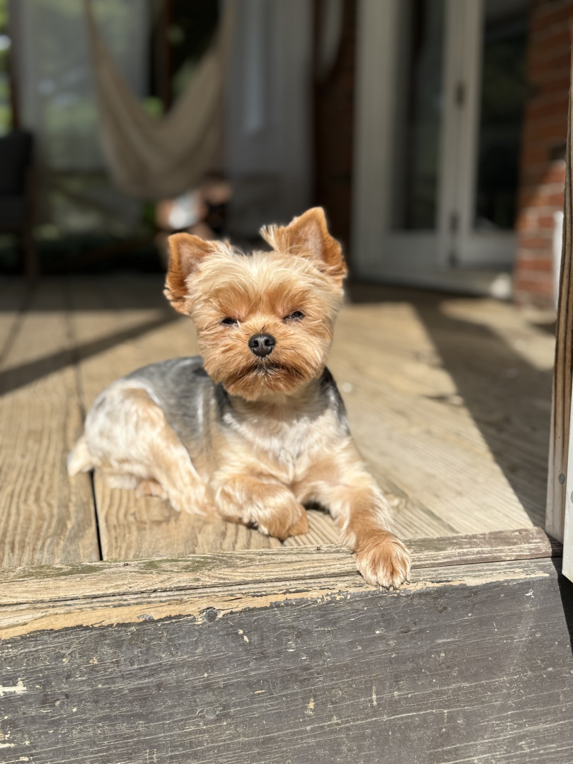 Ollie or Olliegator is our sugar and spice little yorkie that’s always looking for a warm lap to sit in unless he hears the UPS man!