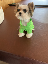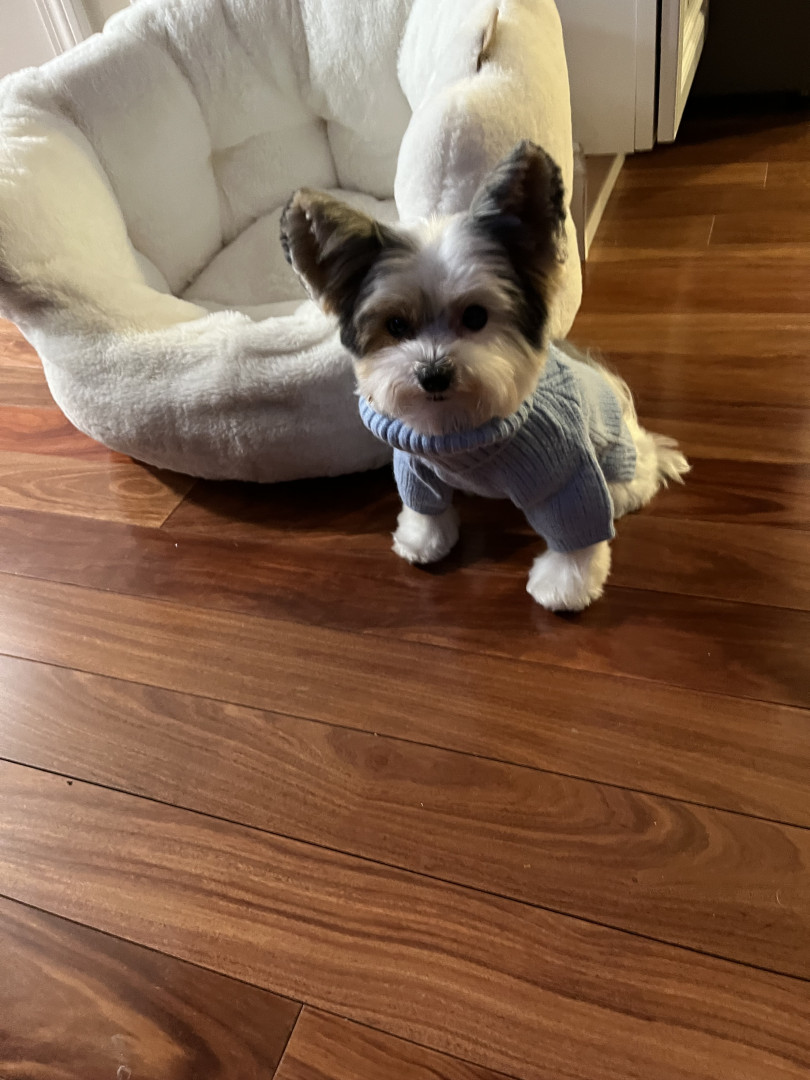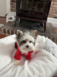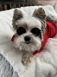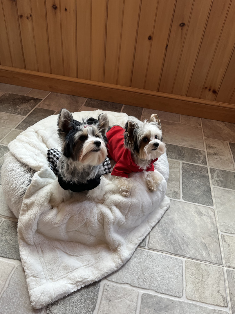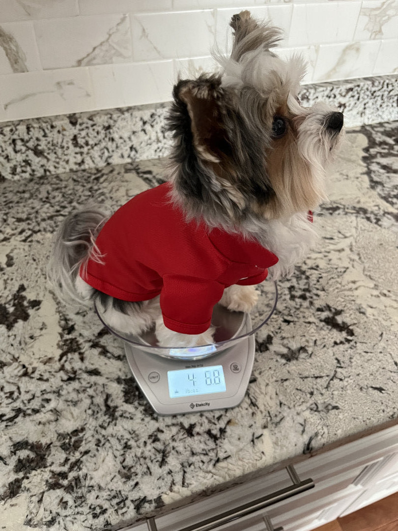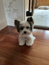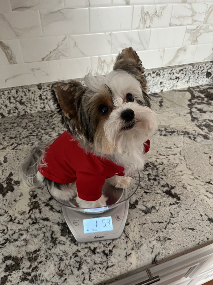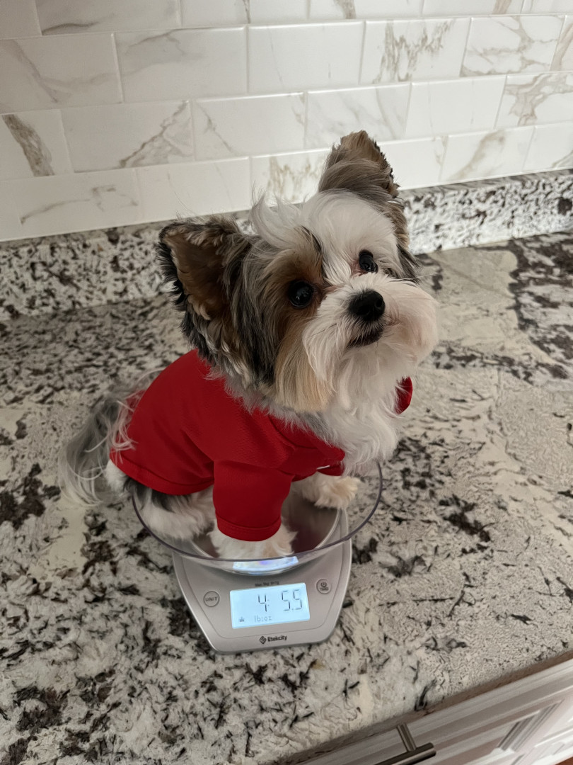 Ollie is a 2.5 year old, 4.5 lbs, blue eyed Biewer Terrier. He has tiny legs and loves all people, kids included.