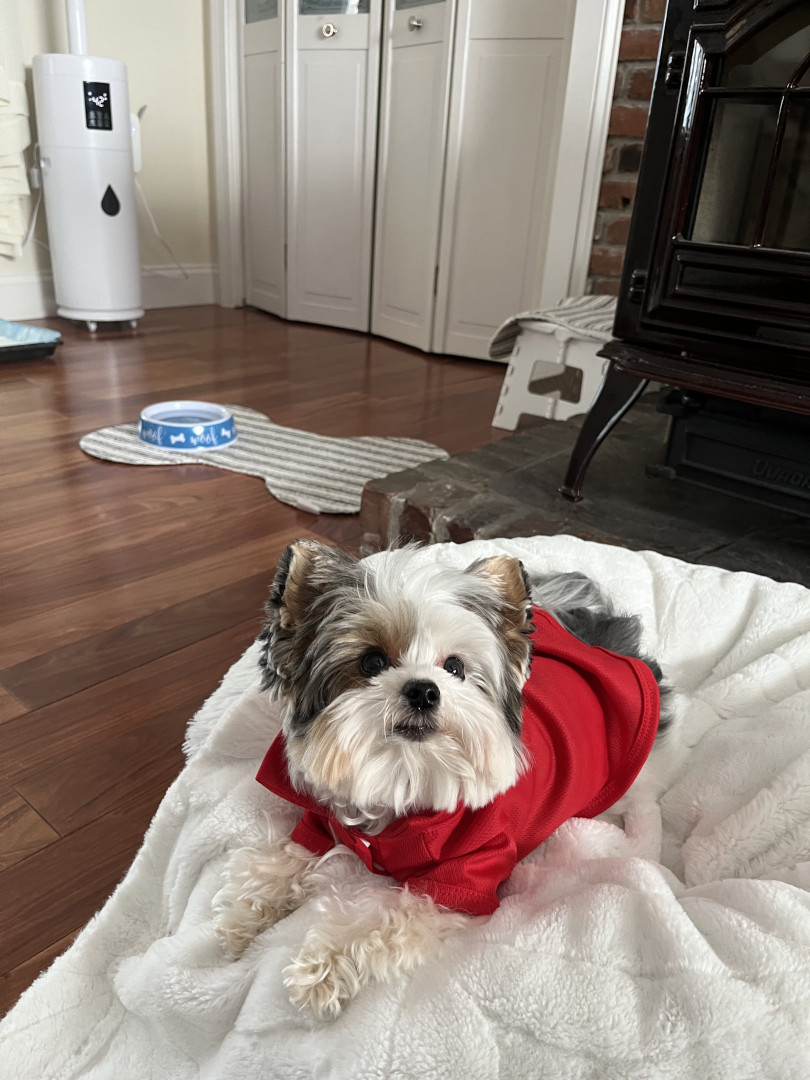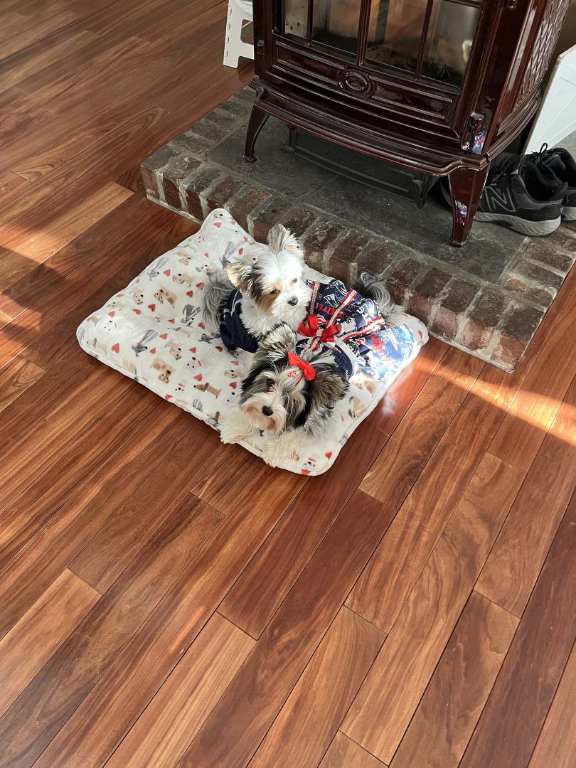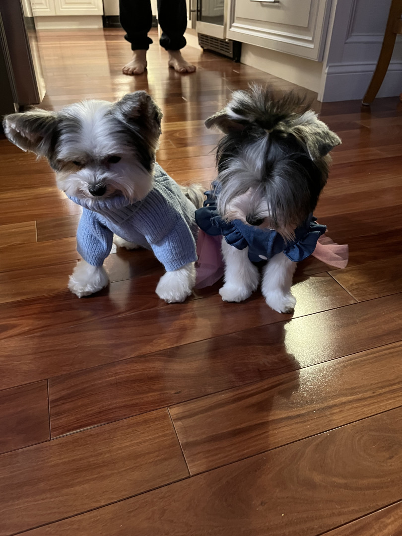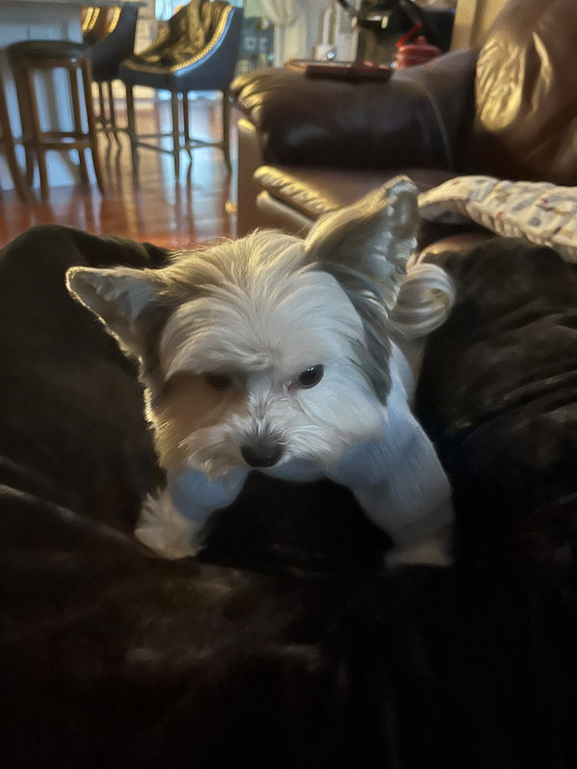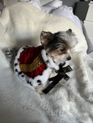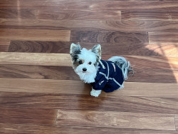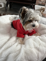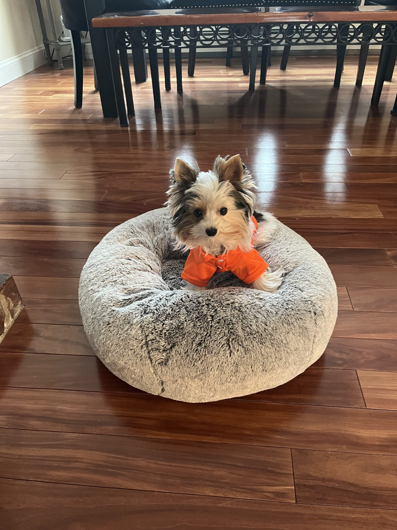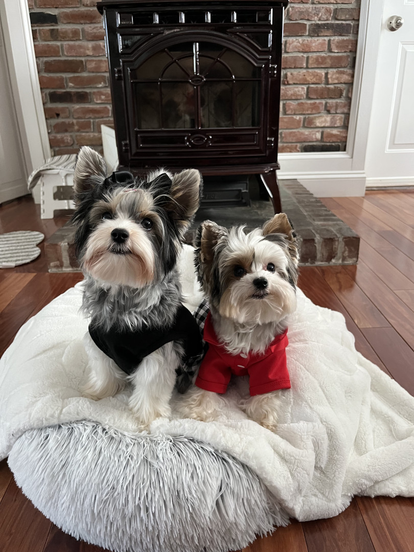 Ollie is a 2.5 year old, 4.5 lbs, blue eyed Biewer Terrier. He has tiny legs and loves all people, kids included.