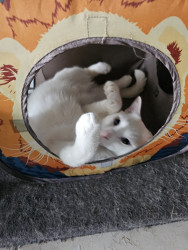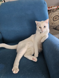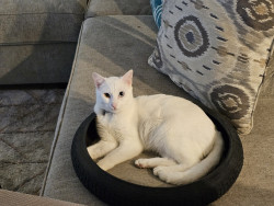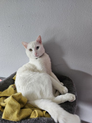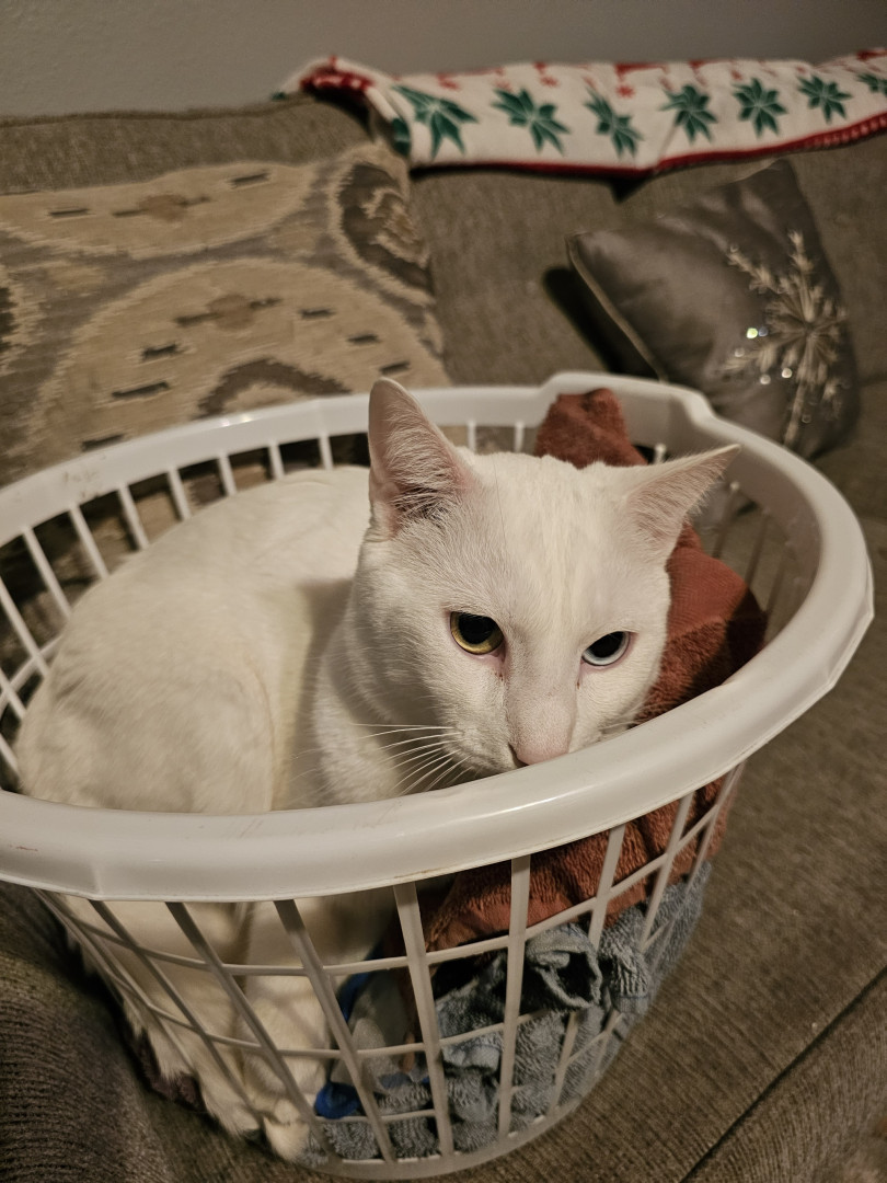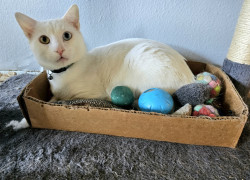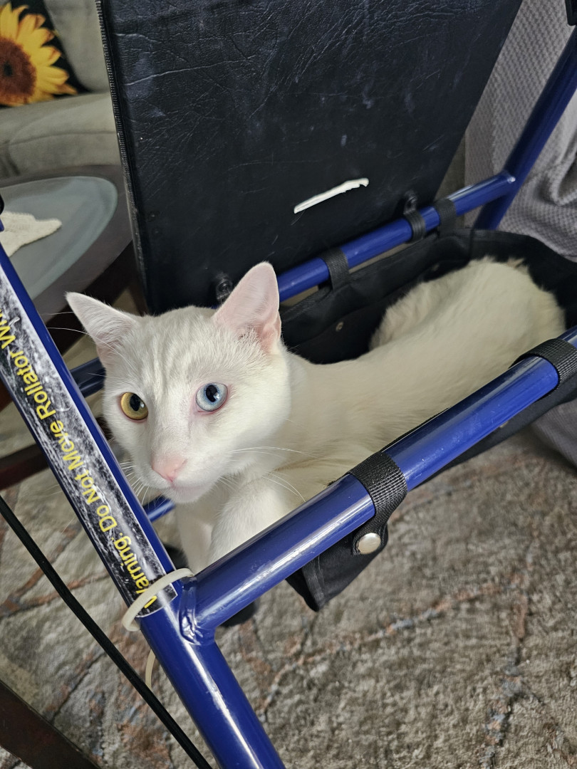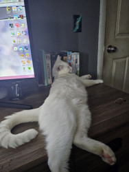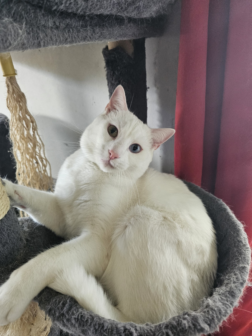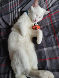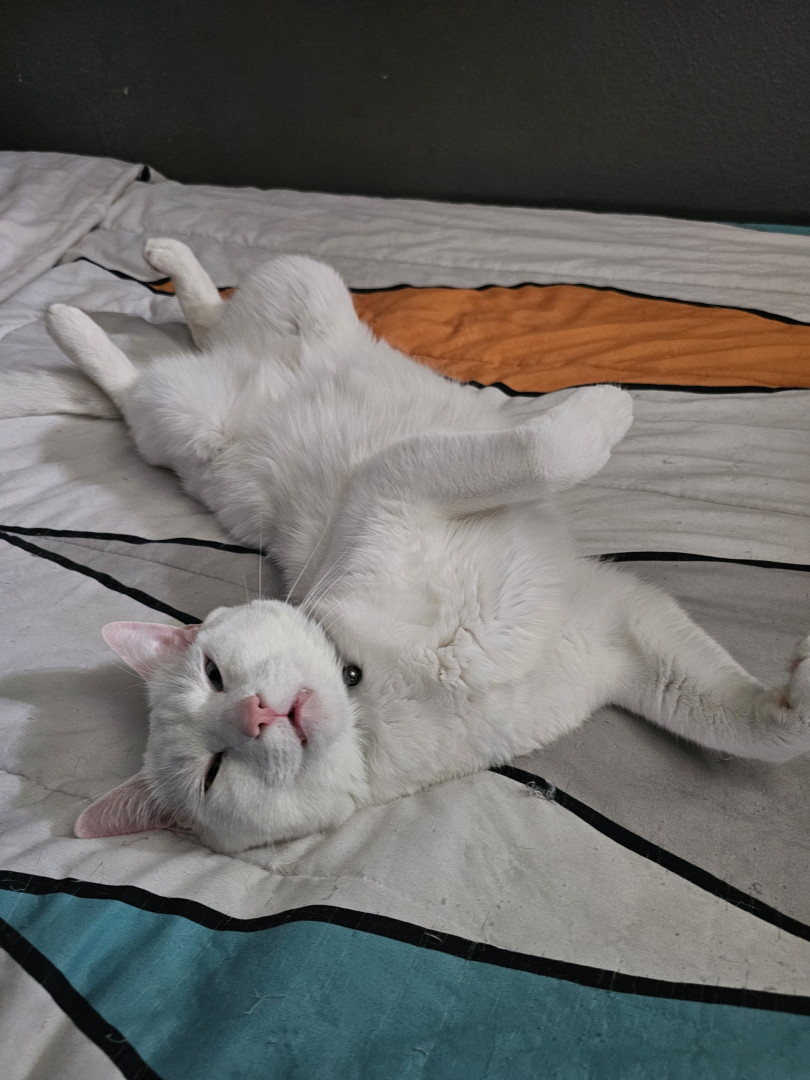 Olyver should be America's Favorite because he is a very unique kitty who does whatever he wants. He will sleep wherever he wants from the top of the fridge to the freshly cleaned litter box. When he is not sleeping, playing or causing chaos he can be found talking up a storm to whoever will listen. Olyver definitely lives upto the saying that every cat is unique.