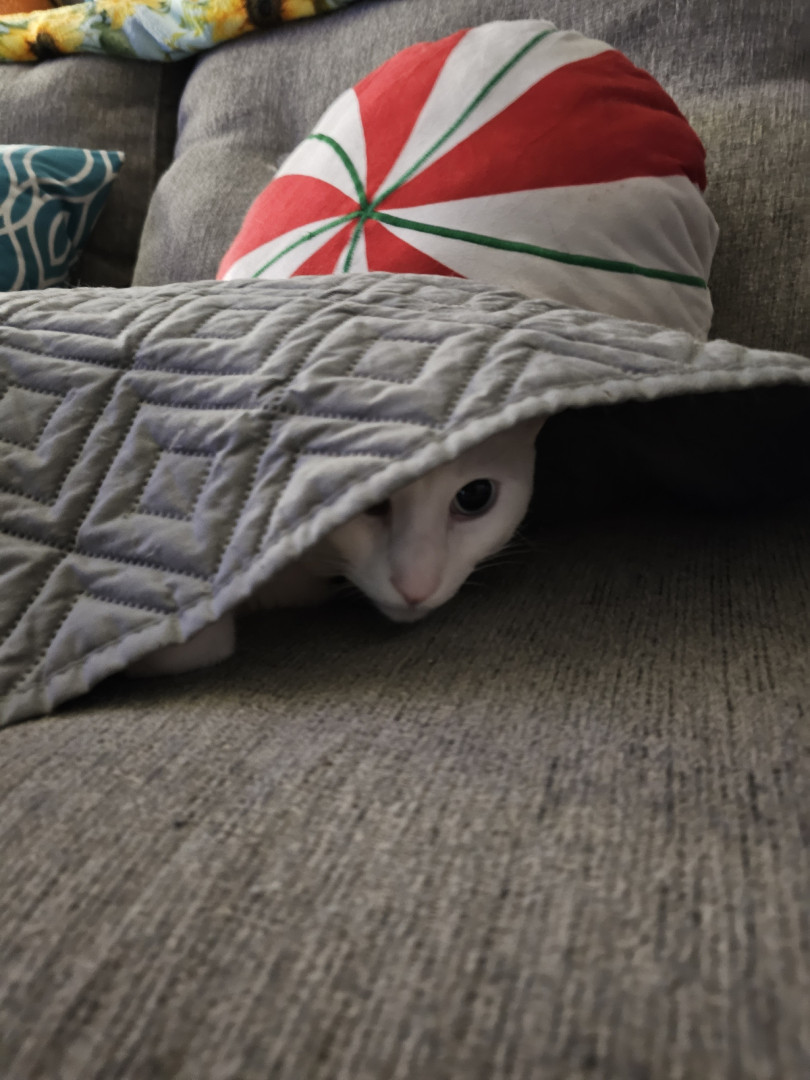 His nickname is ghost and he sure does live up to that. We often joke that he can walk through walls because of how sneaky he is. One minute he's sleeping on the couch and the next he'll be in room that had the door open for a couple of seconds.