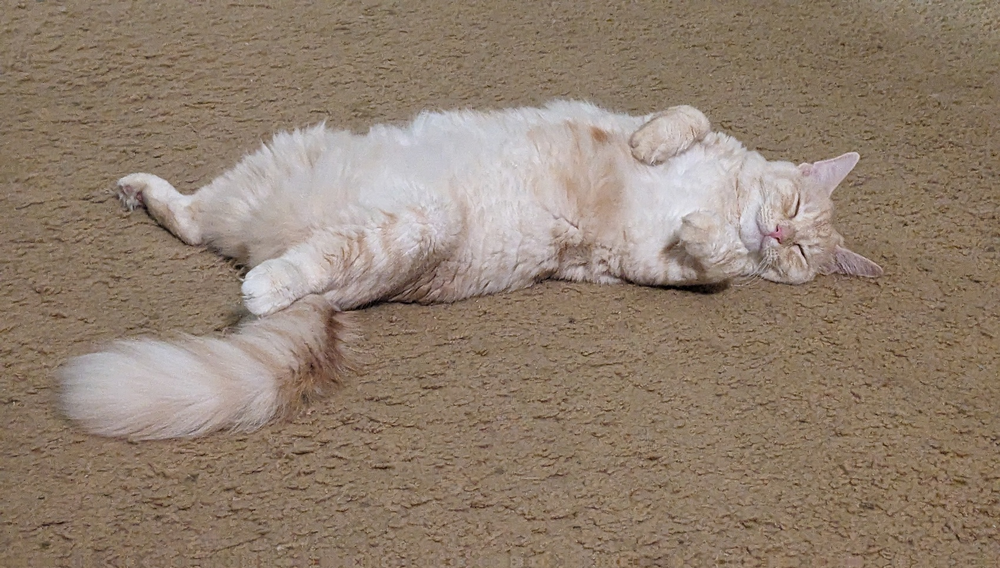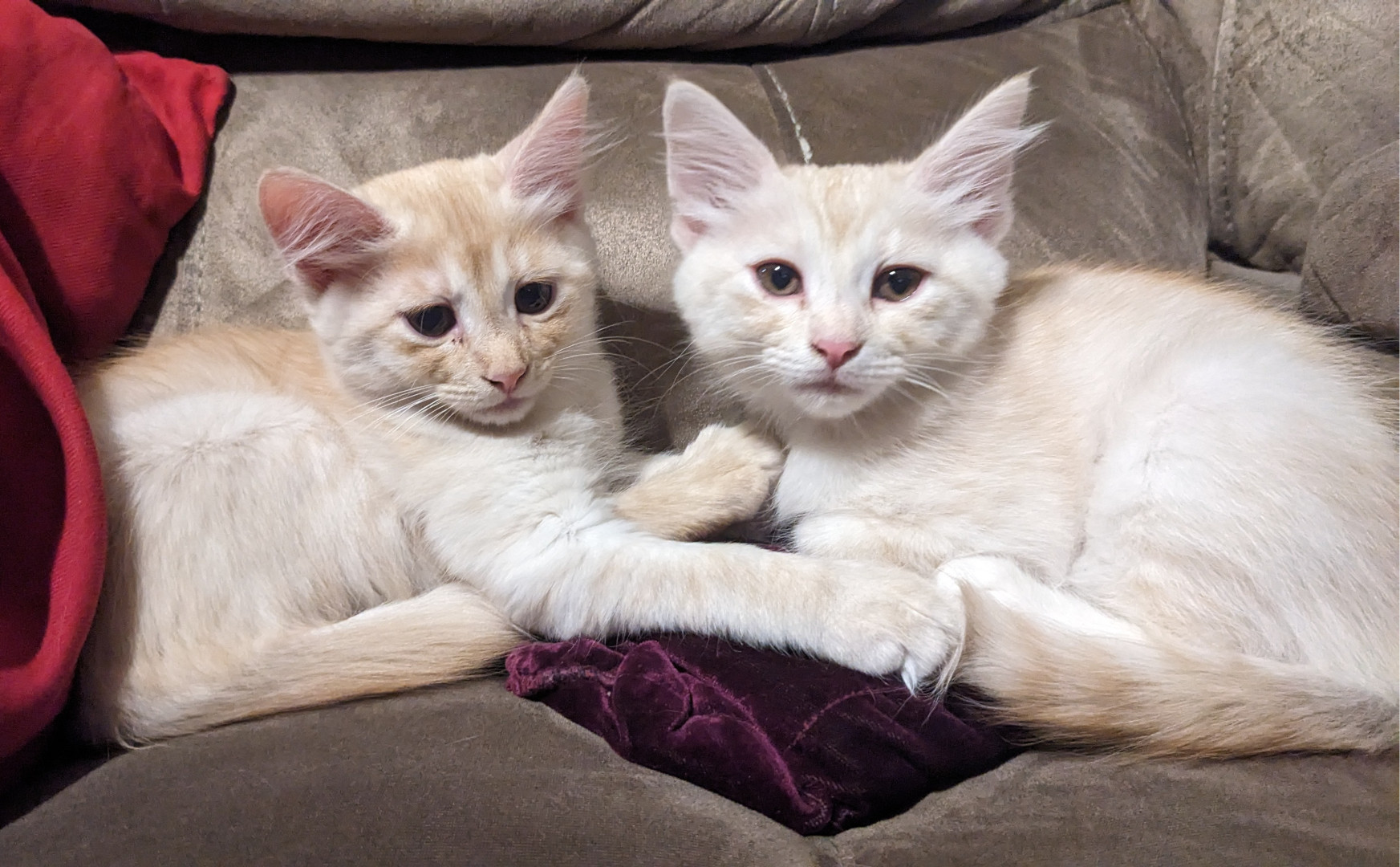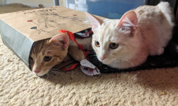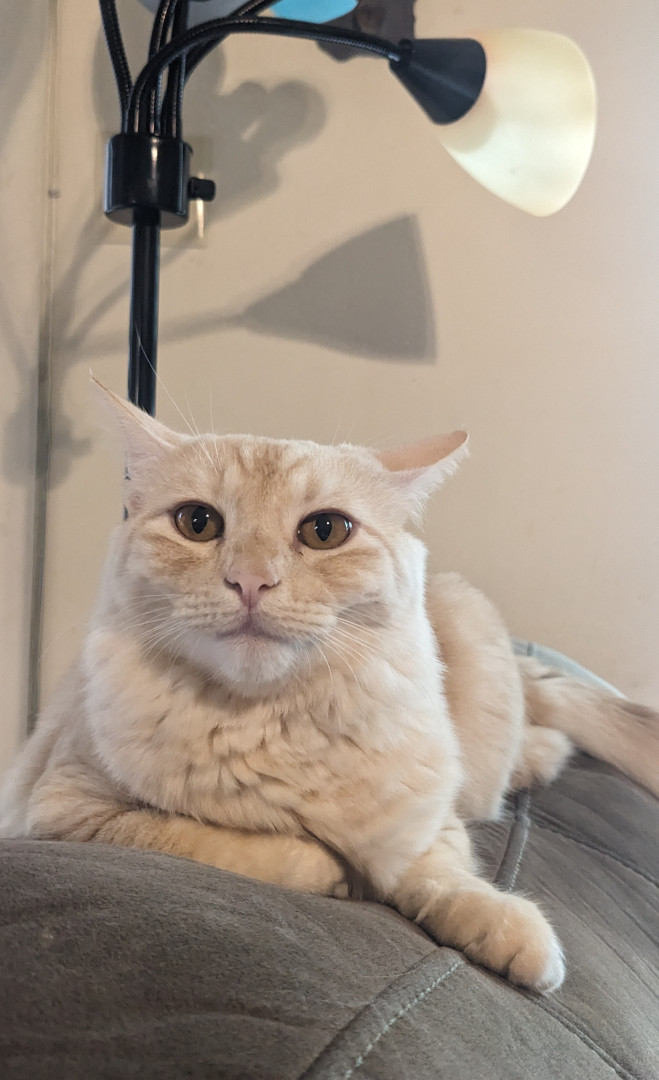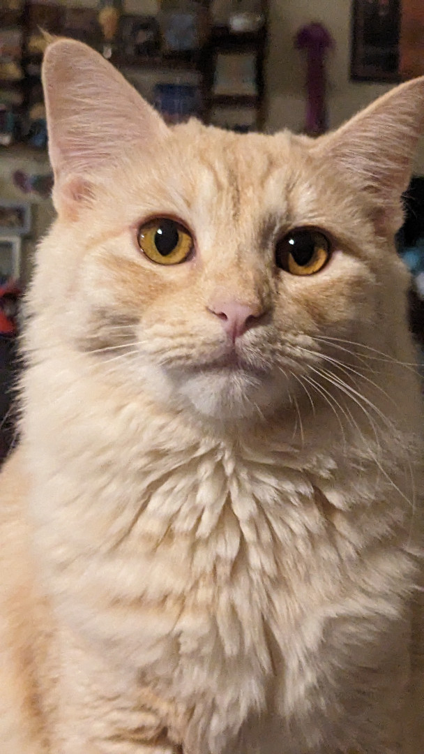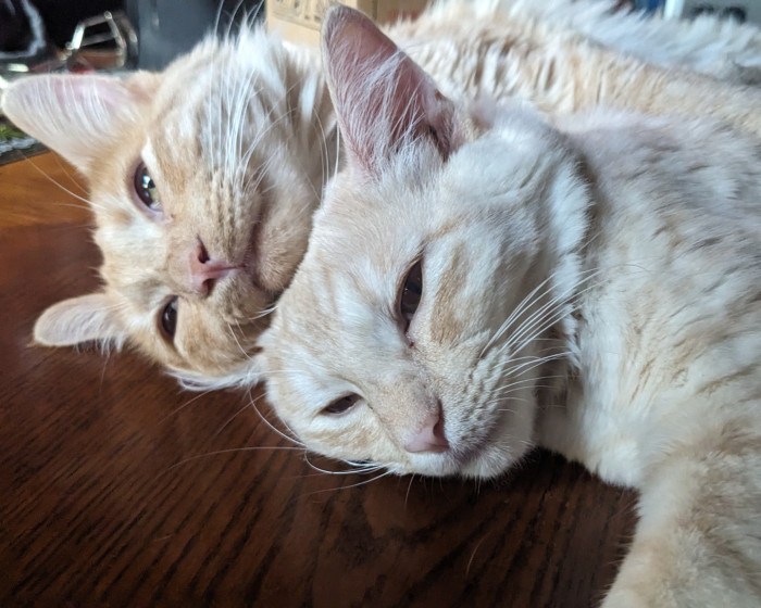Onion is a pampered ginger princess with long, luxurious fur who enjoys snuggling with her sister Cheese.