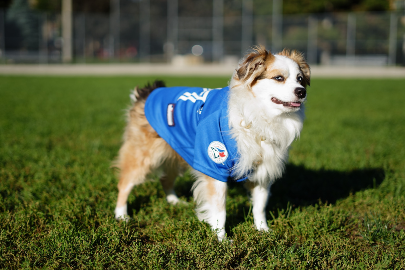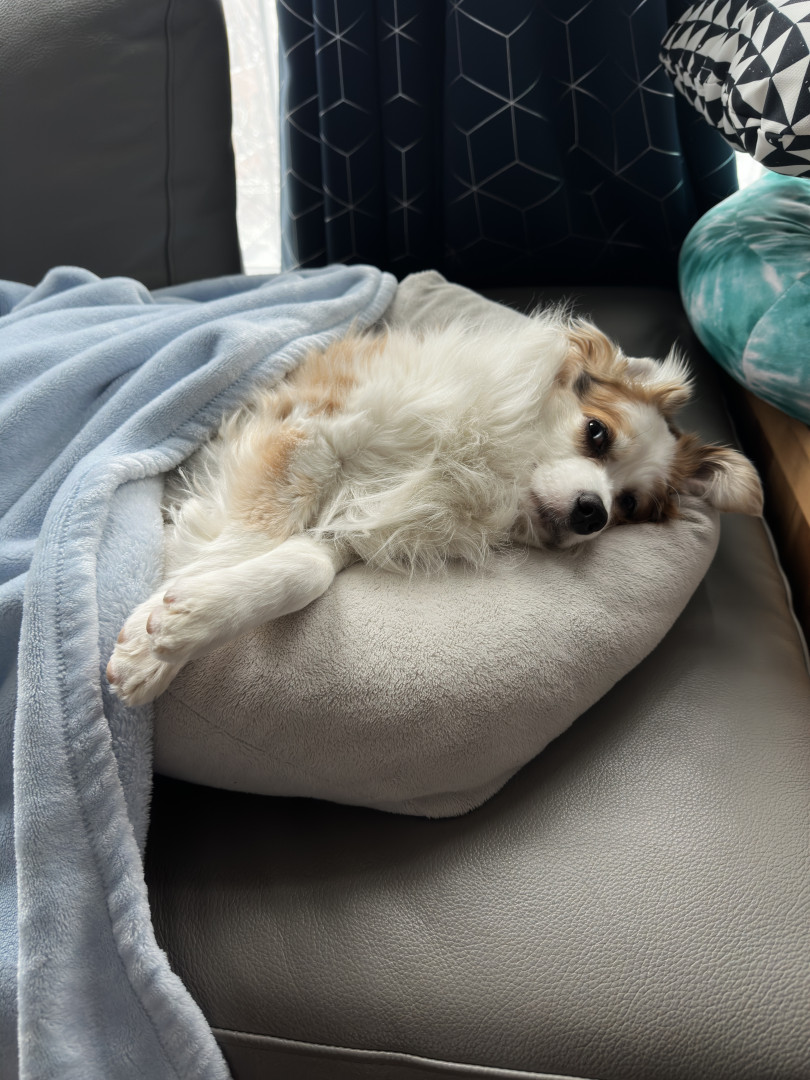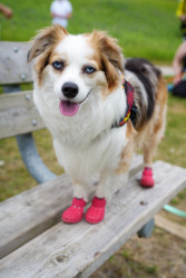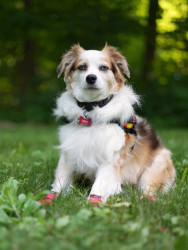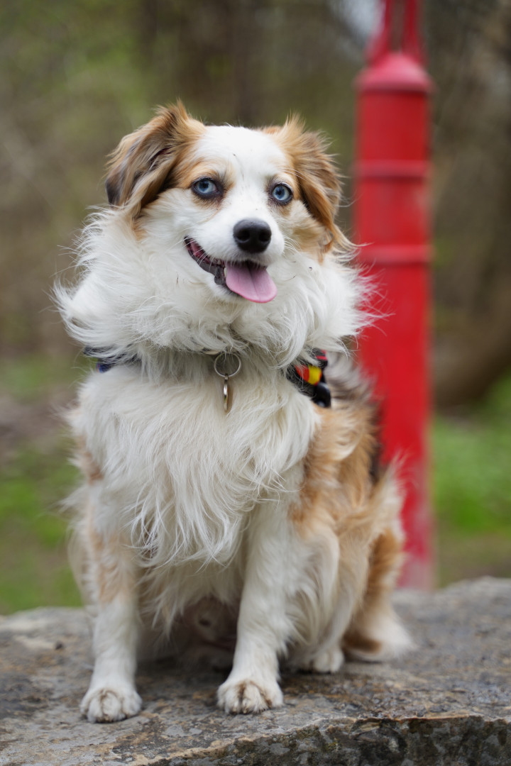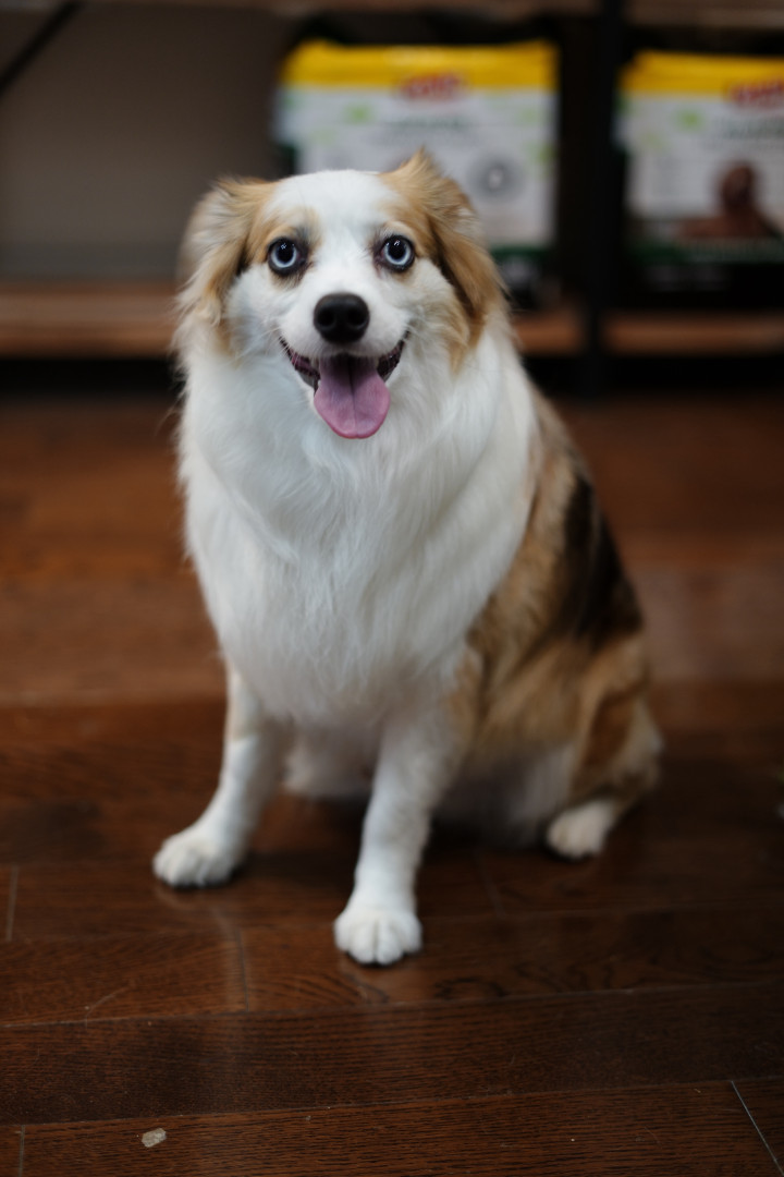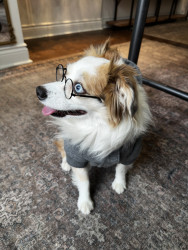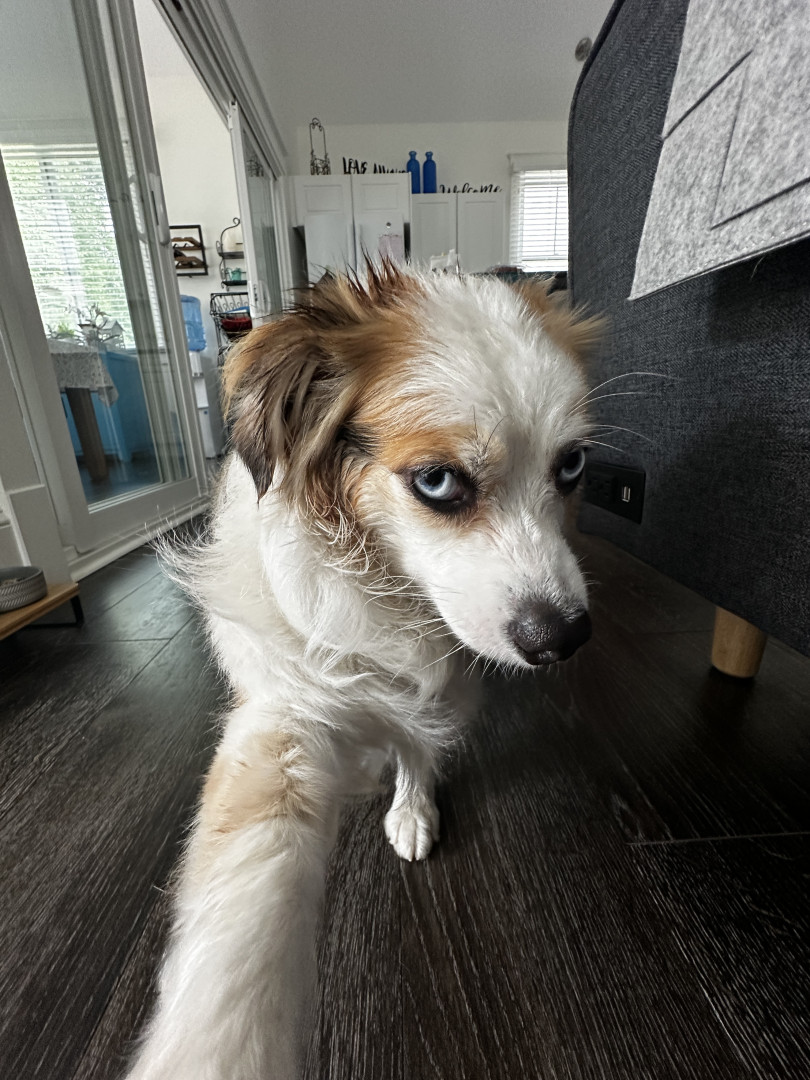 Mini Australian shepherd but has the biggest personality. Big love bug and gives everyone attention