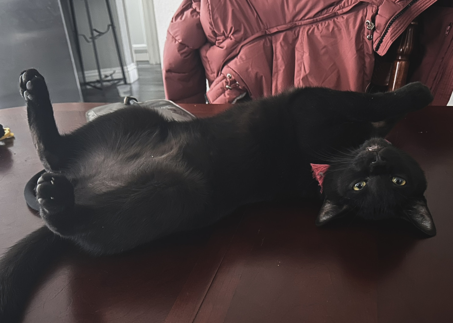 He understands humans emotions and can be an empathic cat. I would say he gives human vibes. Yet silly and a great cuddler. Cat-dog lol