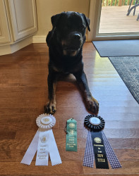 Onyx is not only extremely handsome and intelligent but also lives life to the fullest. His life didn't start out so great, being kept in a garage for most of his first year of life. But his luck changed when he was surrendered. He keeps everyone around him smiling and laughing with his antics, unconditional love, and pure joy in living life. He loves camping, going to the beach, golf cart rides, and traveling with his humans. Onyx has also earned his AKC Rally Novice and Intermediate titles.