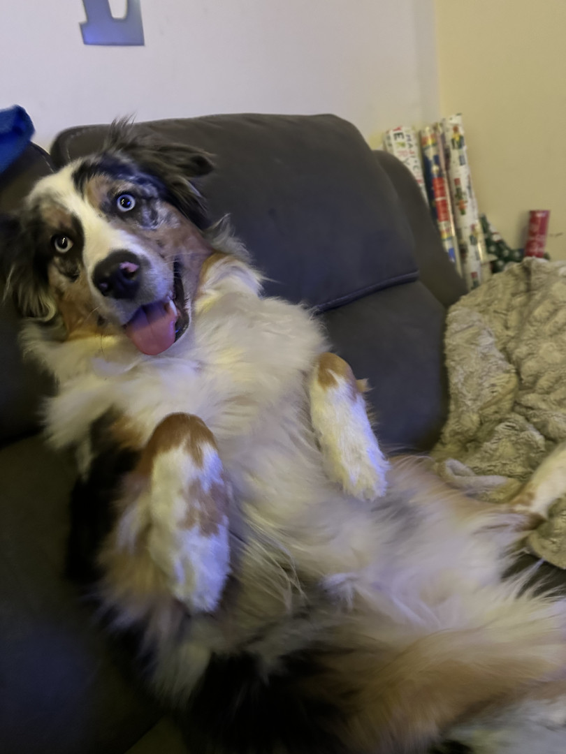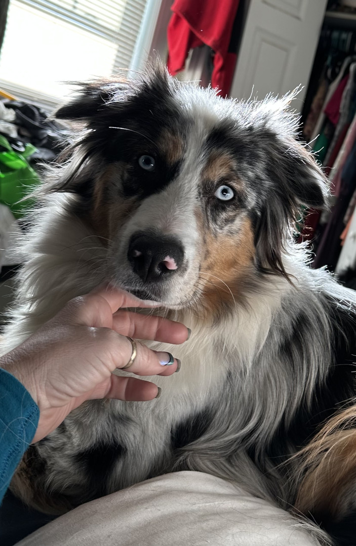 She is a lovable not crazy Aussie. She loves to snuggle and doesn’t like to share mom.