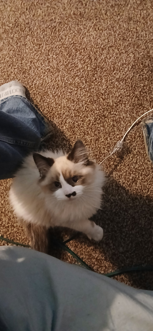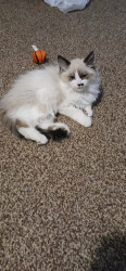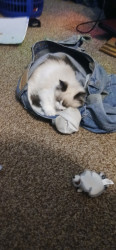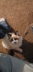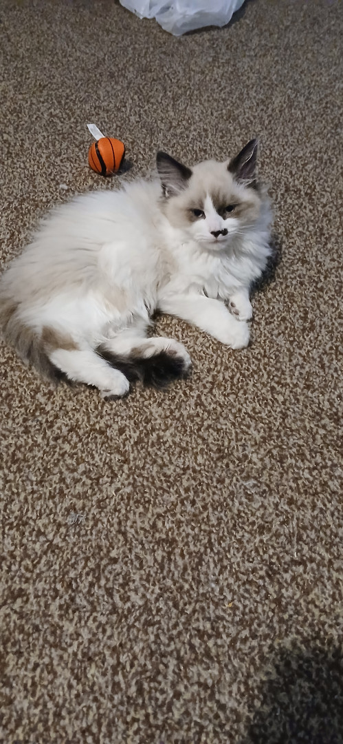 Her mom is a almost all black tourtice she'll and the dad is a long haired white persian. She's got blue/silver eyes