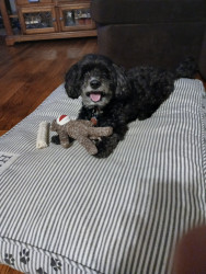 Oreo, think that his a baby he understands both languages n he like to get massages n out 4 our walk n if he doesn't get his way he grow