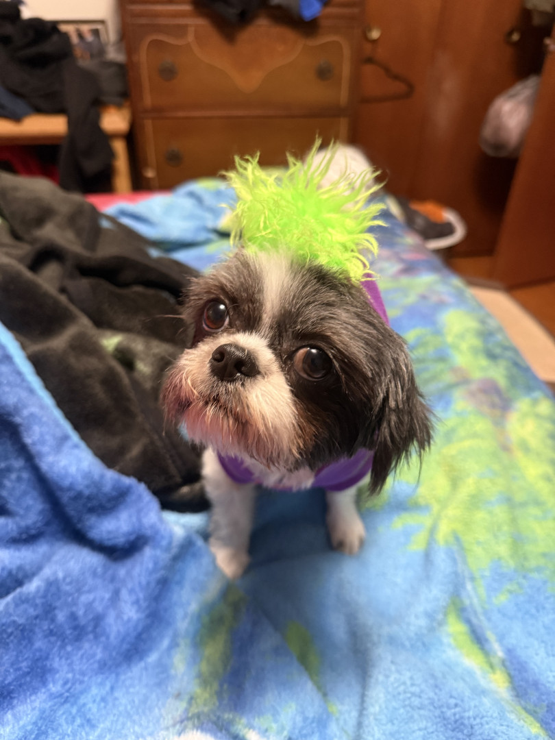 Oreo loves her grinch chew toys and she begs for shredded cheese!