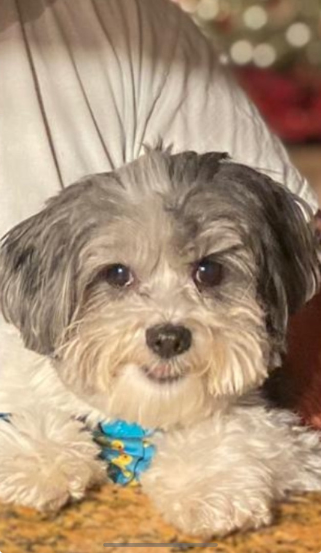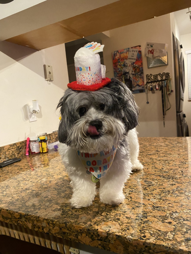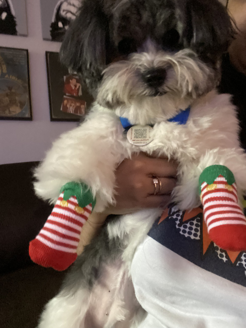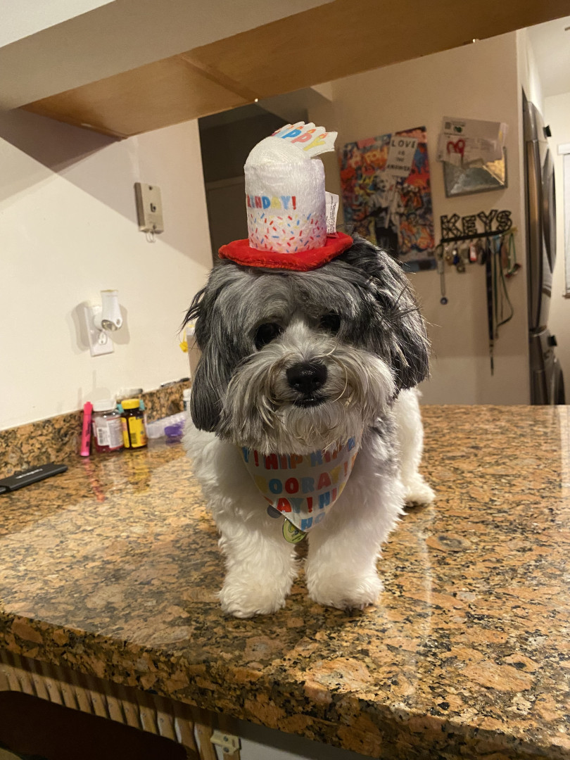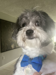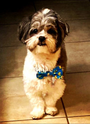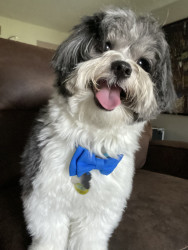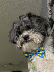 Oreo is a black and white shih tzu that loves to watch tv at night in his parents bed.