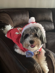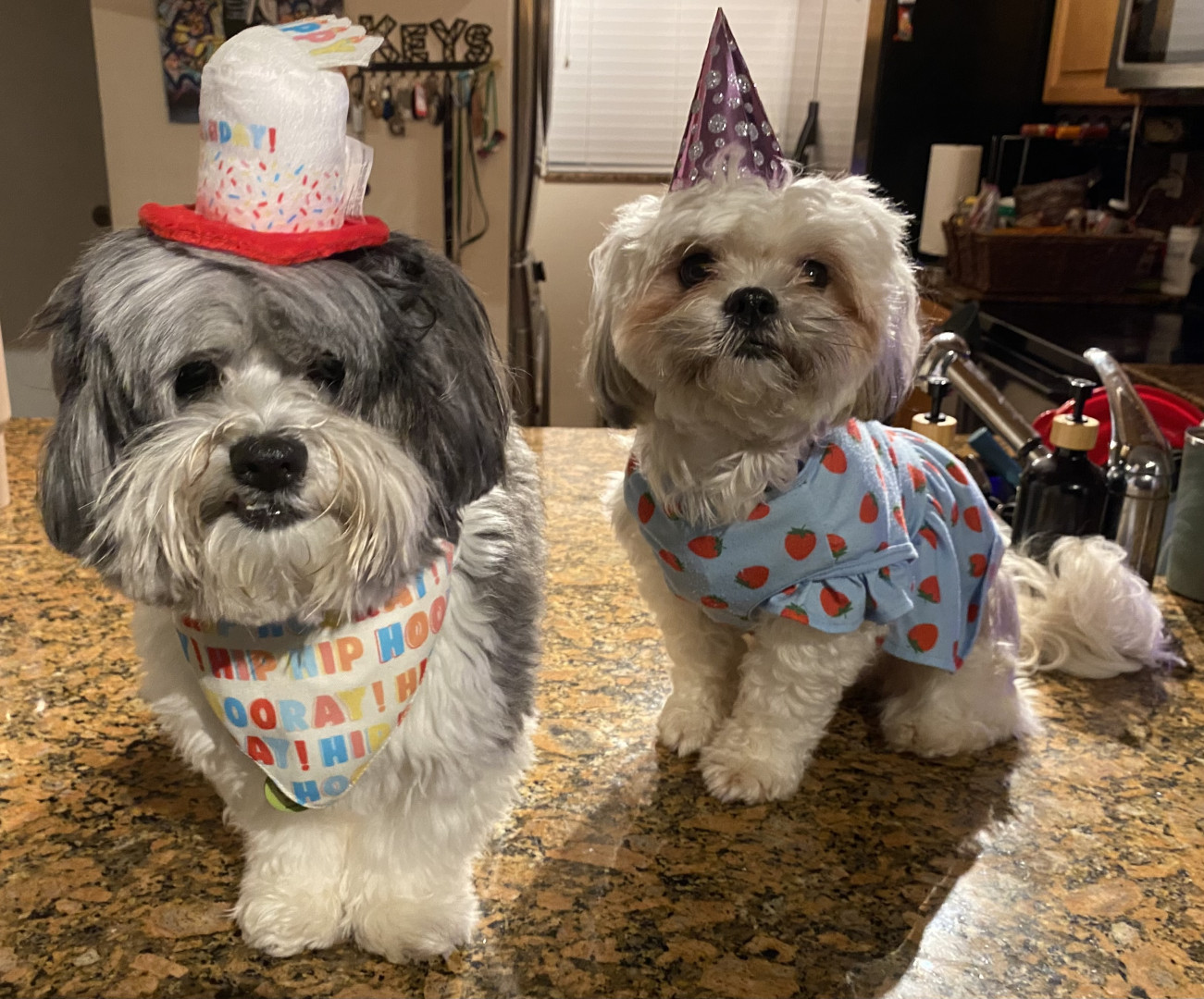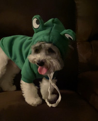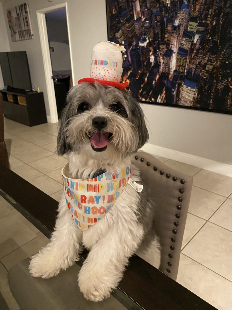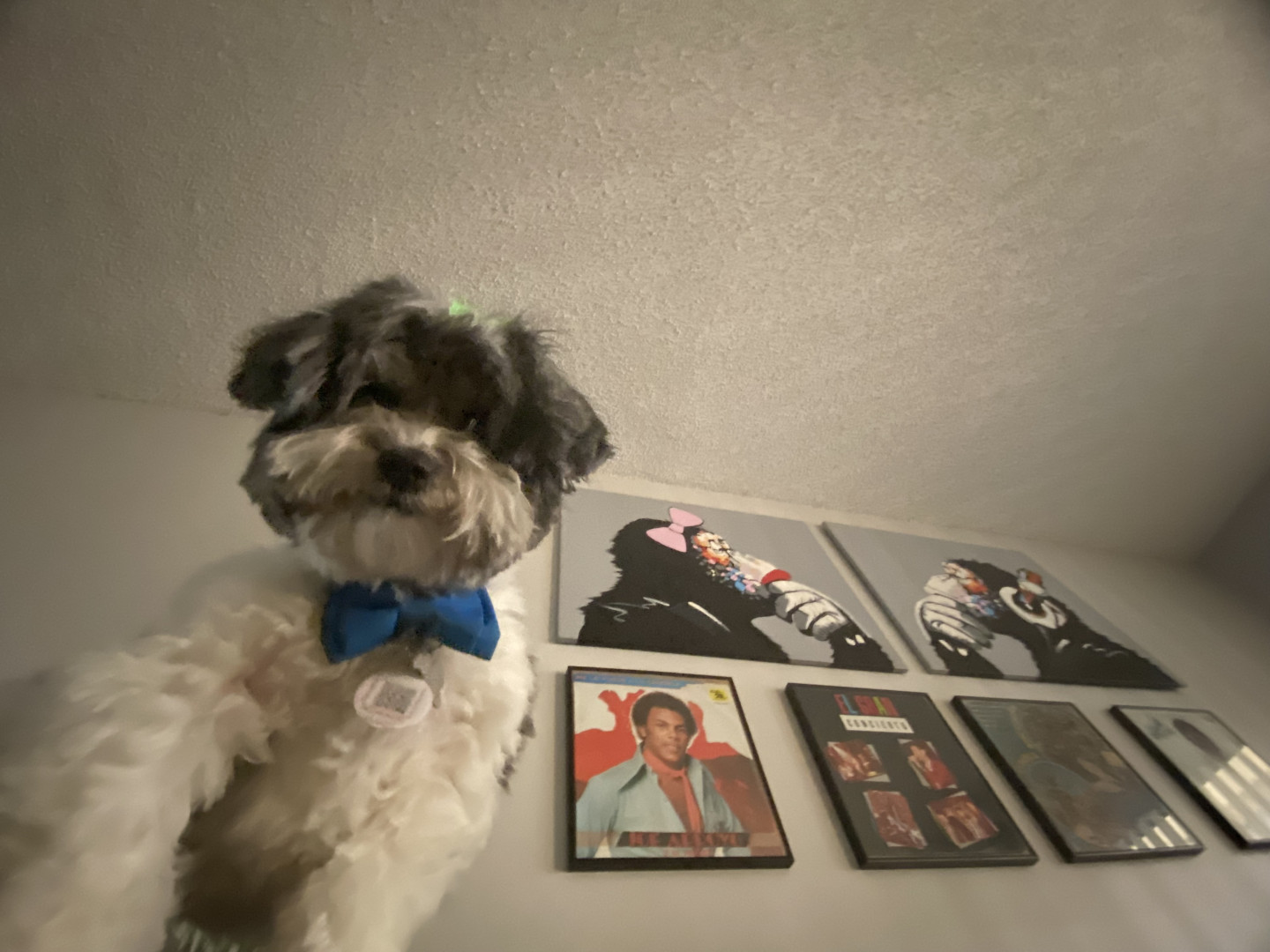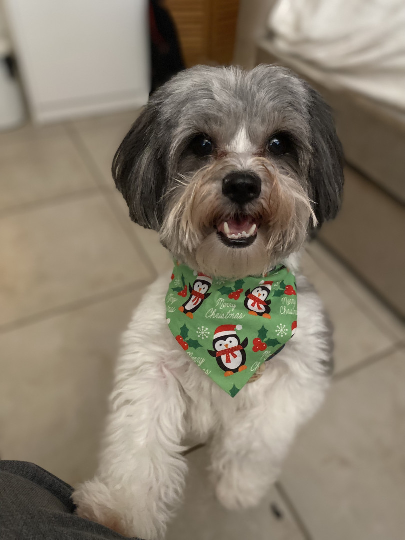 Oreo is a black and white shih tzu that loves to watch tv at night in his parents bed.