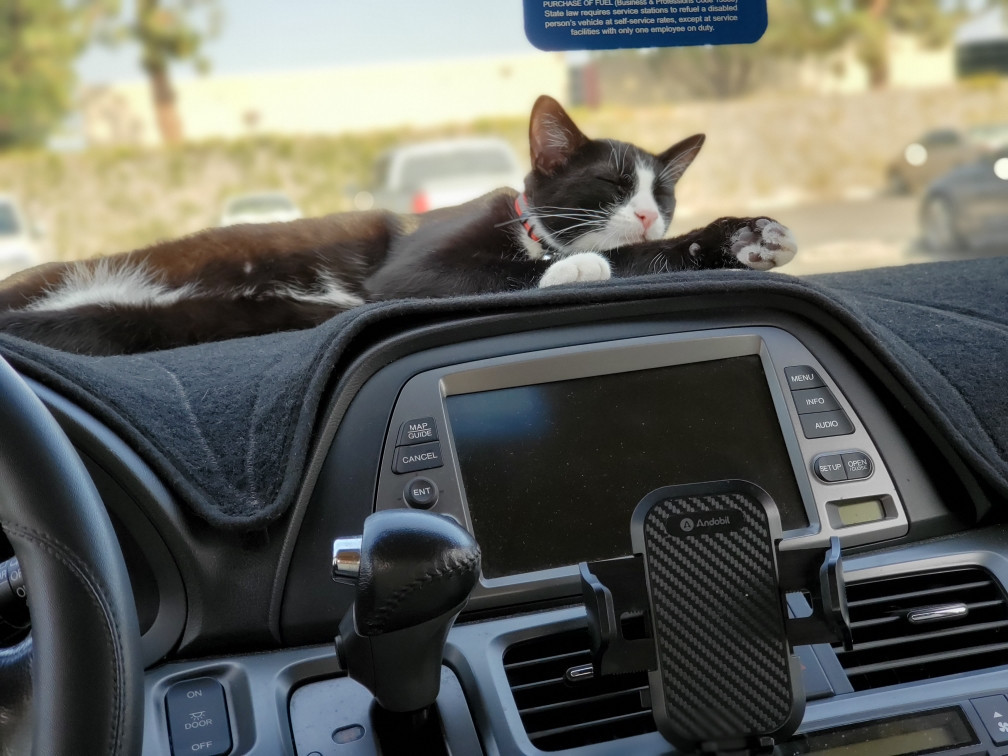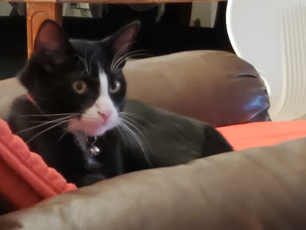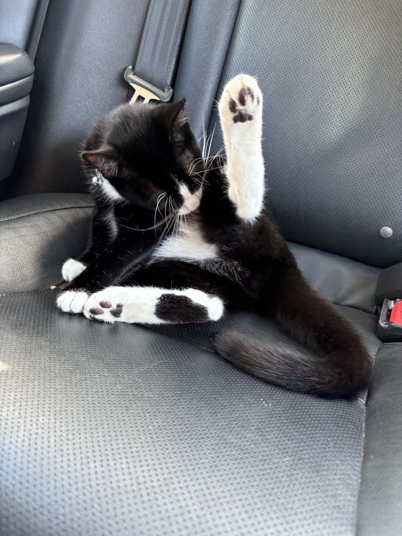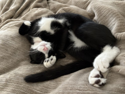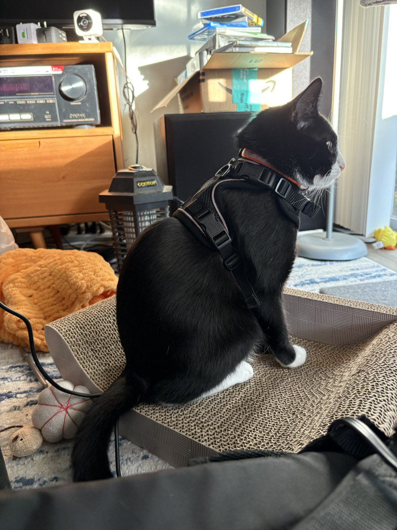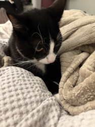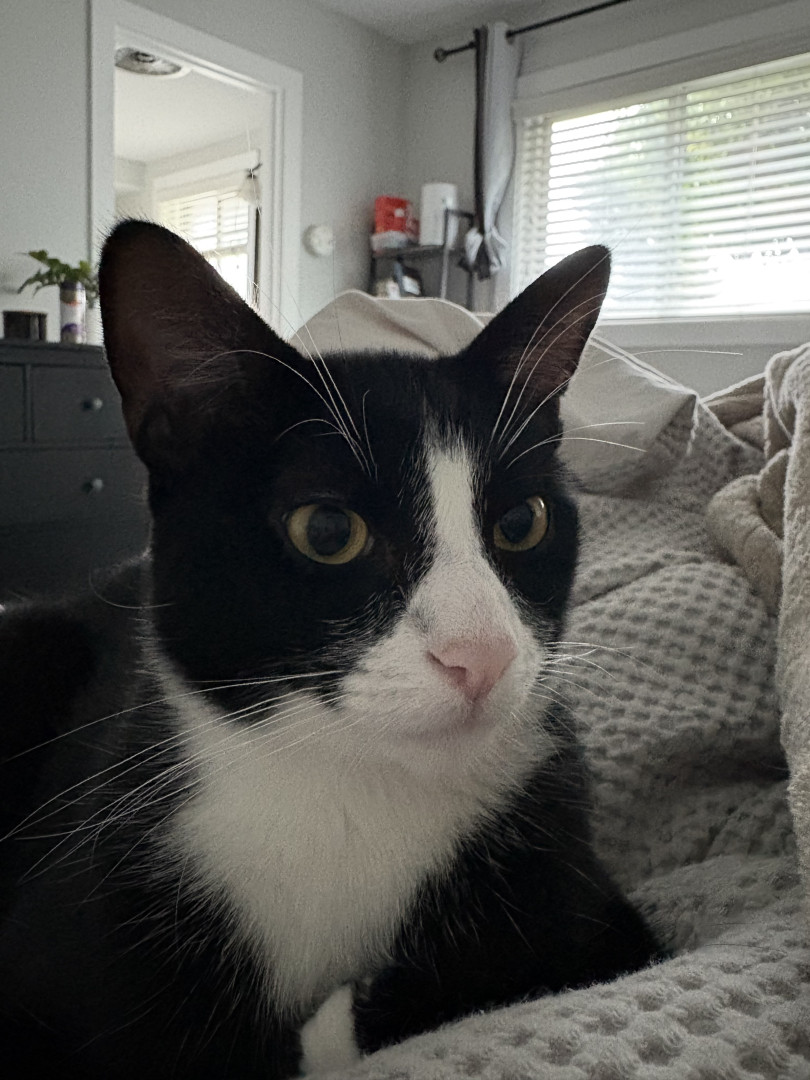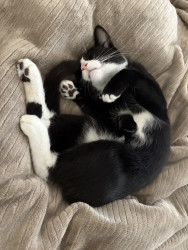 Oreo is a tuxedo cat who loves cuddling and going out for a car ride. He loves to watch squirrel from his window on our living room.