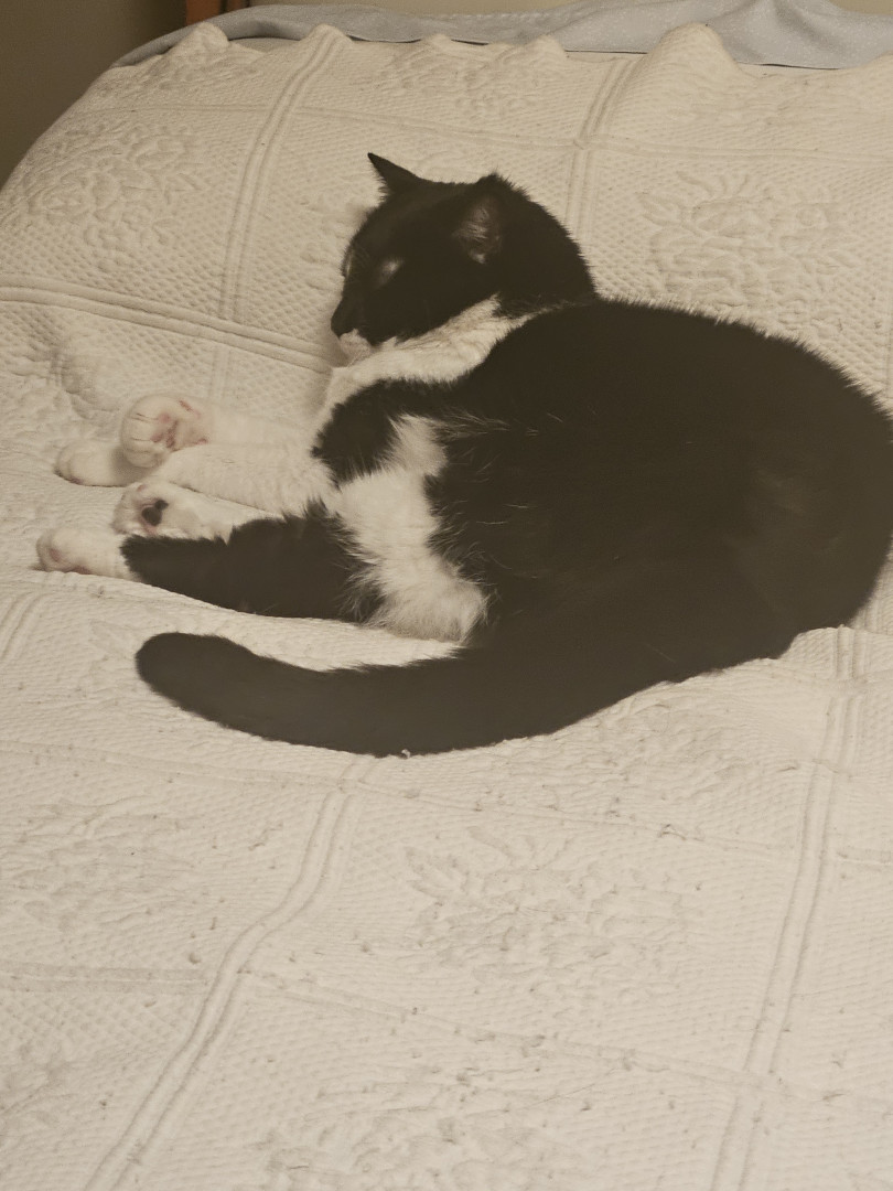 Oreo is a very curious cat. Needs to have attention to keep her active. Loves to go outside on a leach. She was three years old in May.