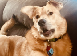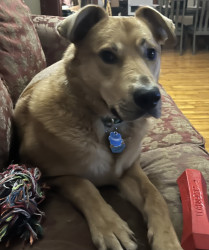 Oscar is a rescue dog from 2 different animal shelters he’s Shepard and lab and been neutered his birthday is May 12, 2021 a Taurus