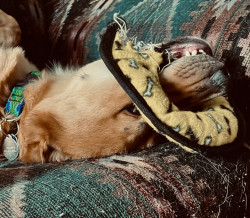 He loves squeaky toys and playing with his daddy most of all loves pup ice cream cups so to get nails clipped by mommy