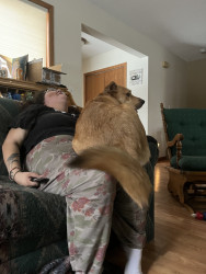 Loves to give kisses shake paws he’s little shy at first but quickly adapts to other for treats and has to smell everything that comes through door