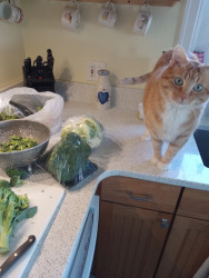 He is a great cat rarely gets into things, like the xmas tree or new things that come into the house, doesnt dump potted plants, rarely eats human food but loves brocolli & popcorn.