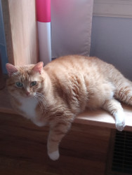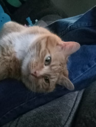 Is a charter, talks to his mice not his humans,requires loving no matter what time of day or nite & loves to chew on your hair.