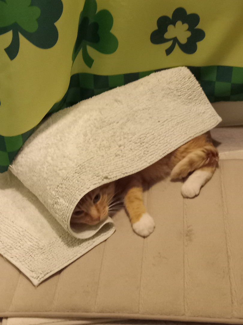 Meowing at his mouses, never meows otherwise unless he is playing with them, then you hear him body slam them, when a 19 lb cat hits the floor you hear it in this small house. When you fill up his water bowl he will go stick his whole leg in it for around 30 seconds & sits there then proceed to lick his leg/paw.