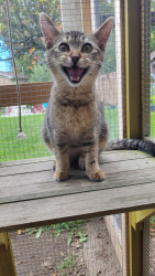 Osprey is such a communicable kitten. She will voice her annoyance, her excitment and even her desire for love and cuddles. She sometimes will even give you the heartbreaking silent meow.