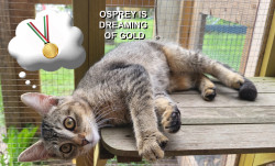 Receive Text UpdatesOsprey loves to spend time on her wheel, staying in shape for her forever home. She also adores playing with springs - chasing them all over until we have to retrieve them from under, well - everything. Her favorite treat is Churus, which will initiate a purr that shakes her whole body.