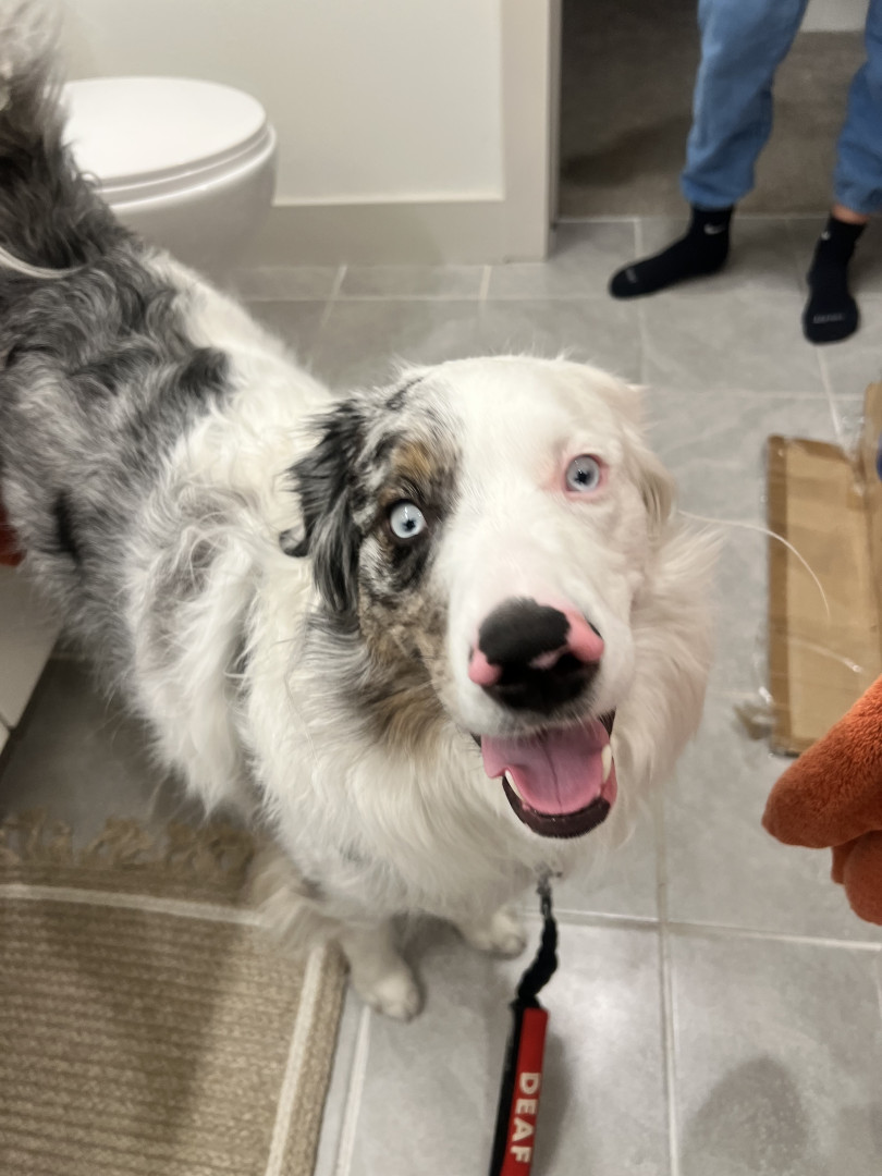 Oswald is a very special guy. He is very intelligent and uses that to get into all sorts of trouble. His most unique quality is that since he is deaf, if he doesn’t want to listen, he will just turn around so he can’t see you signing commands.
