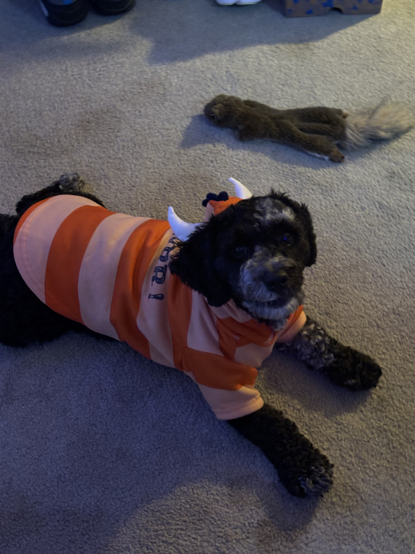 He’s a little clown! So entertaining and would make a great dog model. He looks great in any outfit