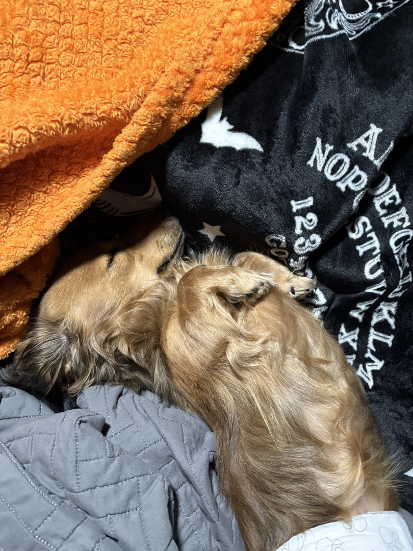 Ozzy should be America’s Favorite because he’s a sweet, goofy little guy with the biggest personality. He’s shy and loves on his own terms, which makes it extra special when he chooses you. He’s always up first for breakfast and play, bunny hopping on the bed and making us laugh. He plays hard with his sisters and somehow makes every day happier. He’s truly the best boy.
