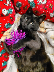 Ozzy is a large sized black cat, many may find him intimidating. But Ozzy is one of the most loving, patient, and quirky kitties I have had the privilege of knowing. He can make a cat person out of anyone !!!!