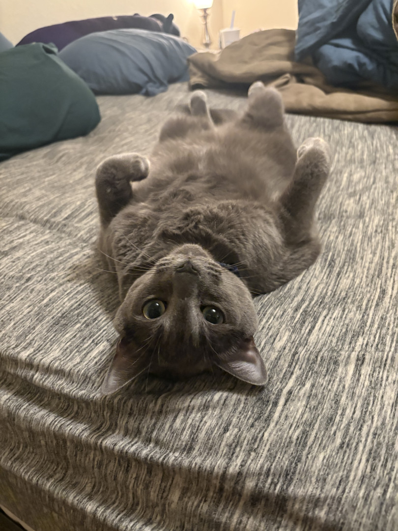He’s very energetic and crazy most the time. He’s the life of the party with his hectic antics. Most of all he loves to cuddle on the couch.