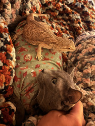 He loves to give “love bites”. He tends to bite you when he’s loving on you.