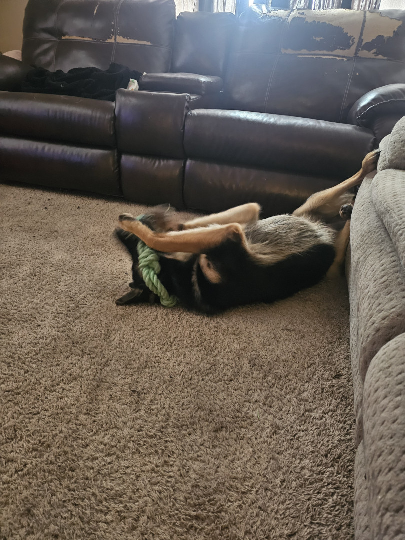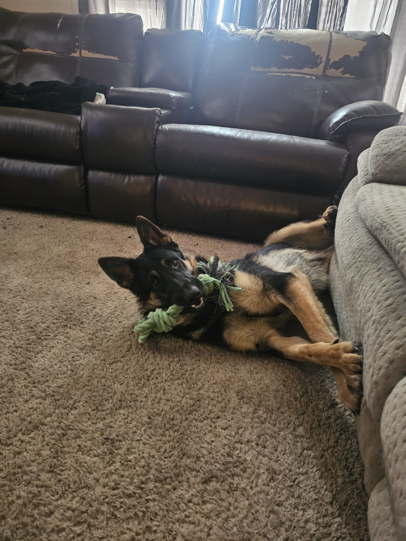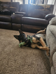 Ozzy is a 9 month old German shepherd. Very active and playful. Loves playing fetch and nibbling on my grandbabies lol.