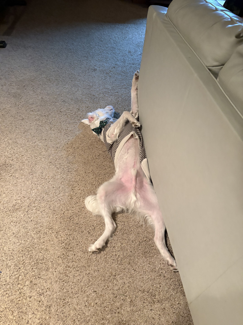 he sleeps in the weirdest positions! whether his paws are up in the air, his legs sprawled out in 4 different directions, or his head turned in a way where his neck looks like it might be broken 😂