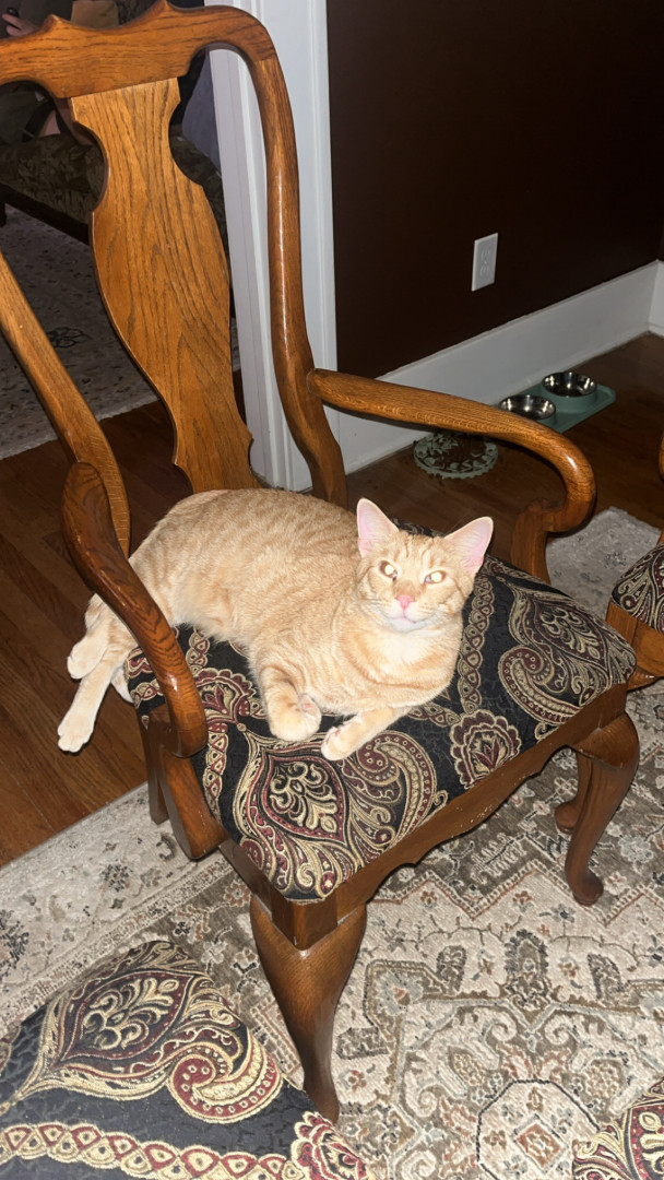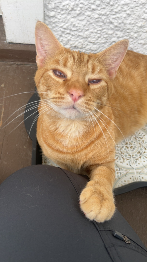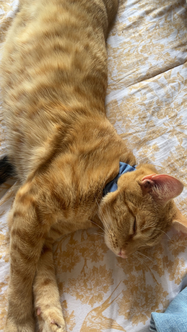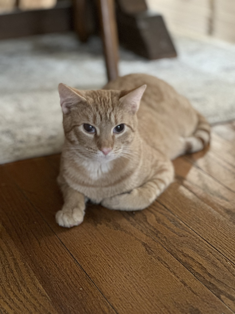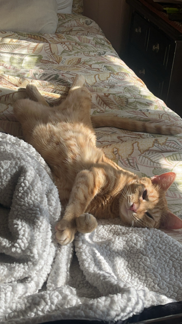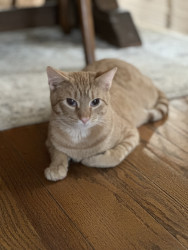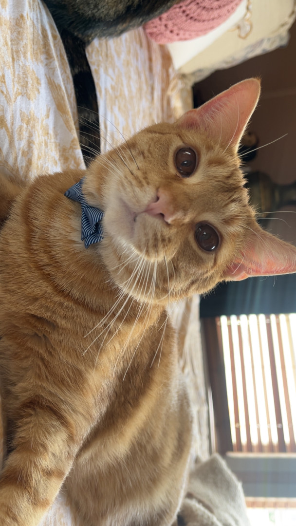 Pablo is an orange tabby that was born blind. He is a goofy boy that loves his bow ties and sun room time.