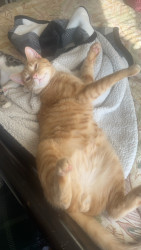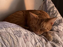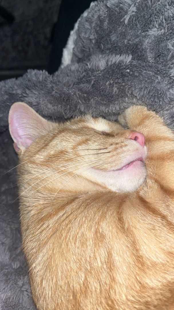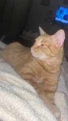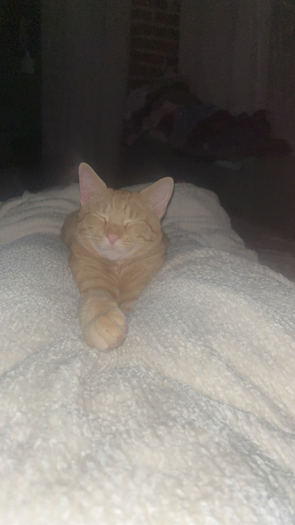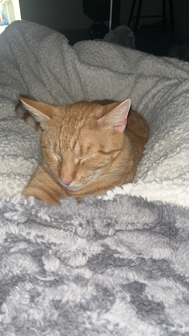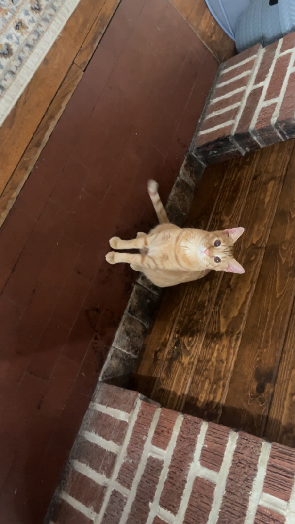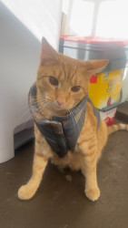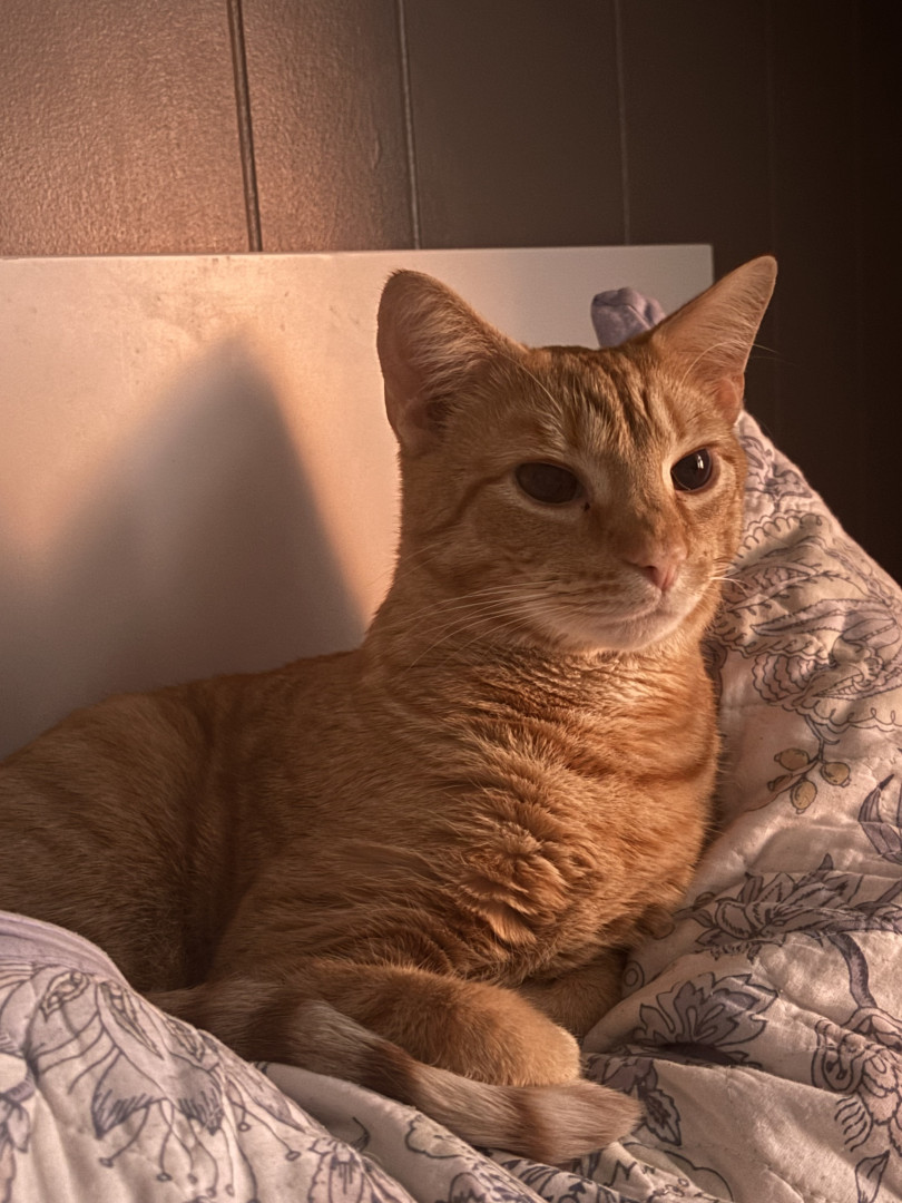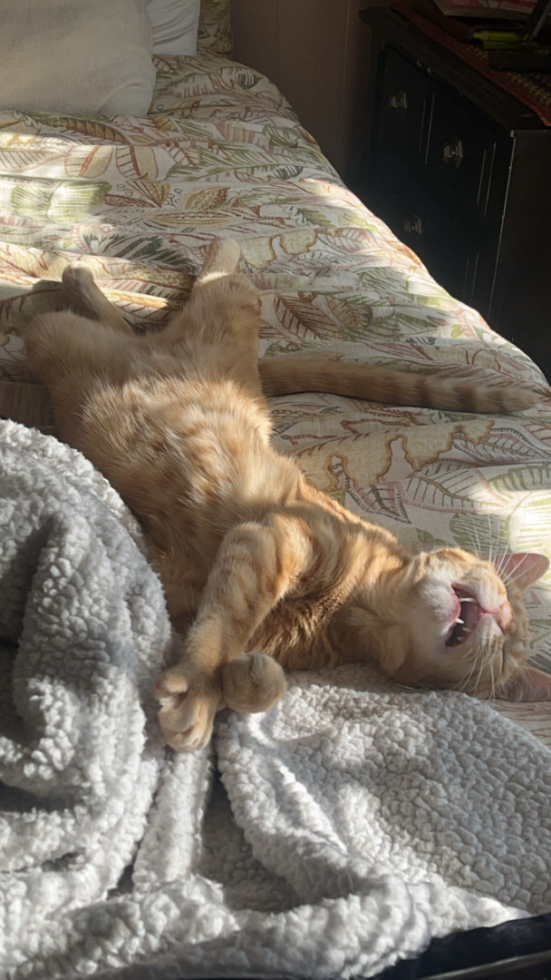 Pablo is an orange tabby that was born blind. He is a goofy boy that loves his bow ties and sun room time.