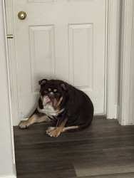 Chocolate-colored English Bully—loving, playful, big-hearted, always smiling, and obsessed with tacos as his favorite treat 🌮🐶