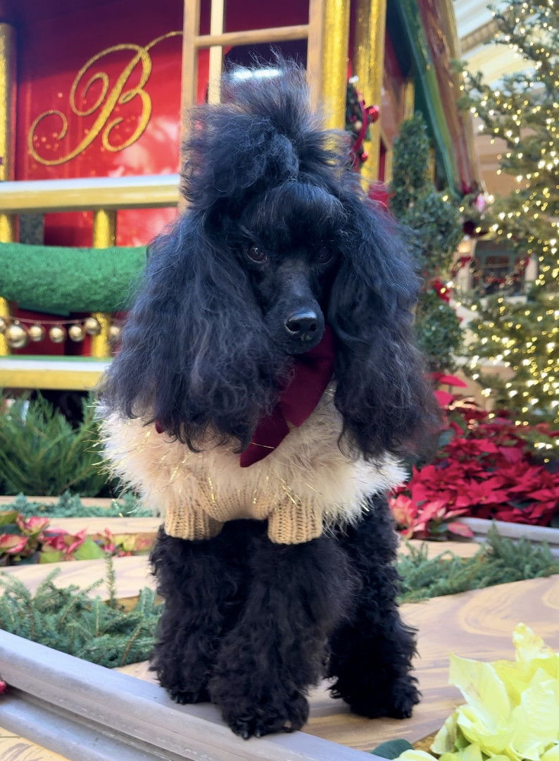 Paddington is a miniature poodle that was rescued from a meat market in China. He now travels the world and helps rescue other animals.