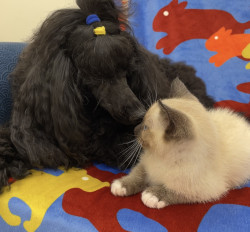 Paddington is a very compassionate boy. He loves to help with rescued baby kittens. He licks them and keeps them warm. He understands the importance of rescue and loves to provide kittens with the comfort of a new foster home.