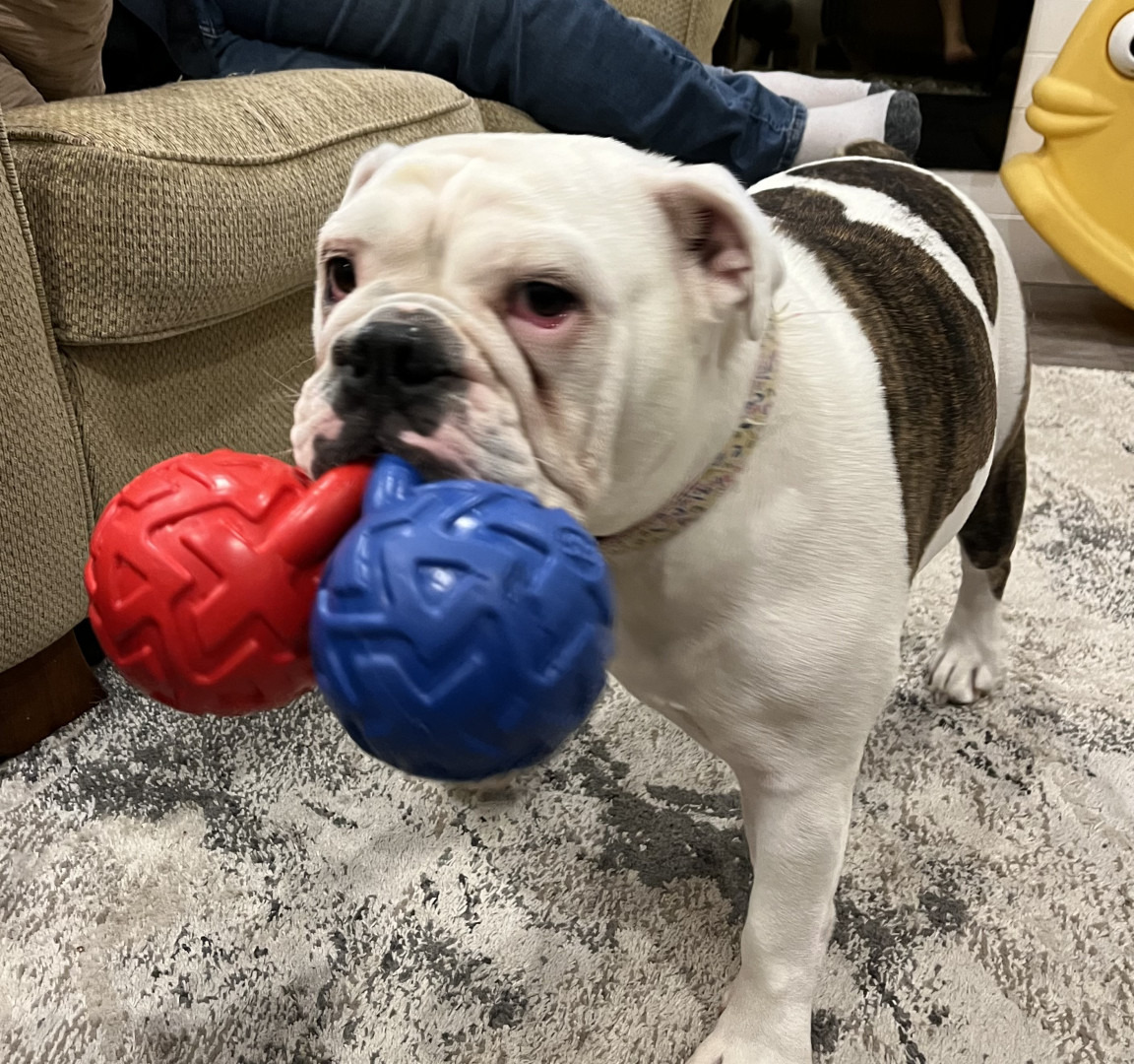 Learn MorePaislee is an English Bulldog and her jaw strength is no joke. She will attempt to destroy any toy we give her. She loves to play fetch with balls or really anything you offer her.